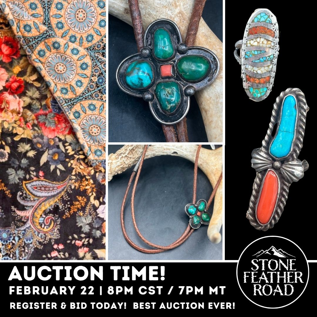 Register & Bid on selected pieces from the STONE FEATHER ROAD Collection.