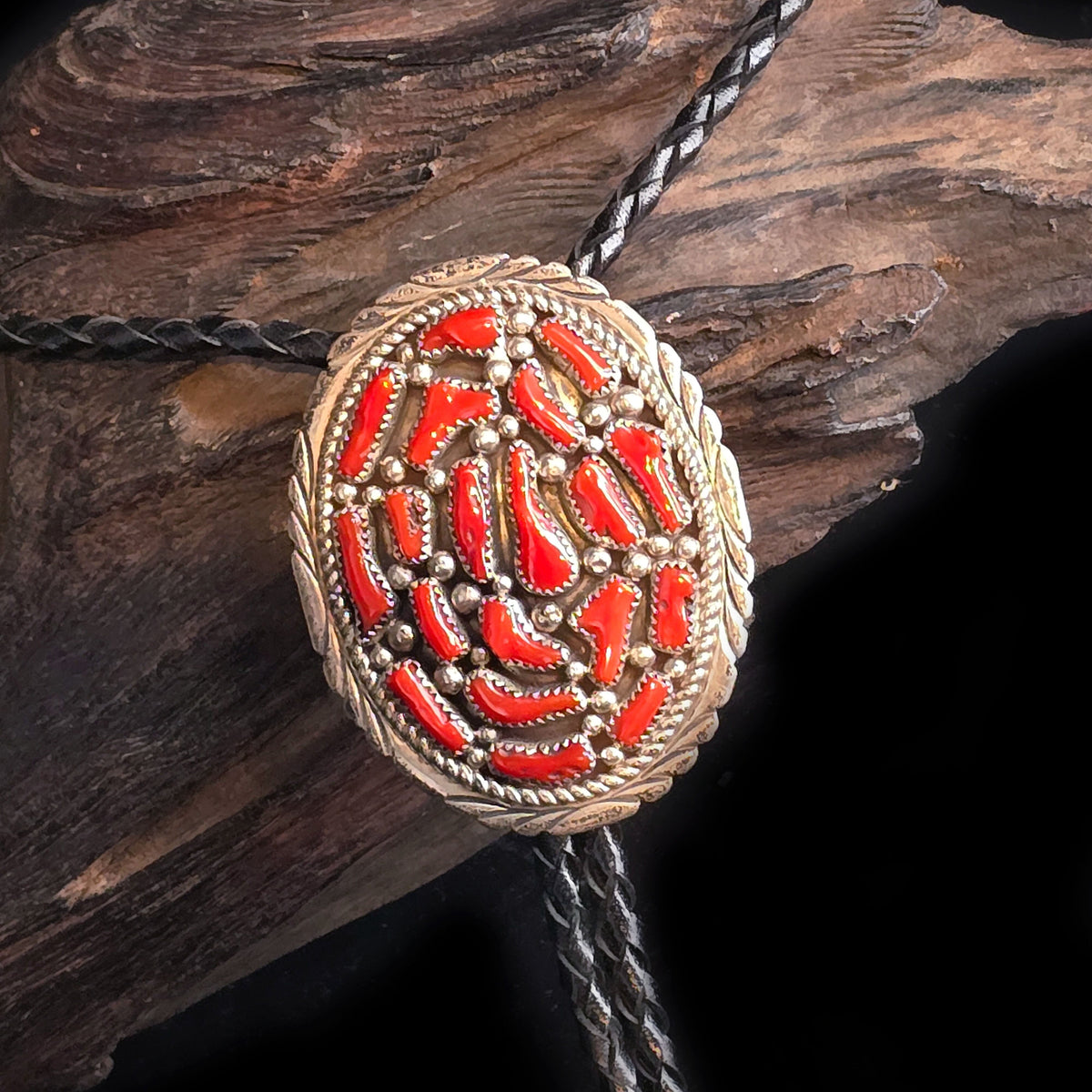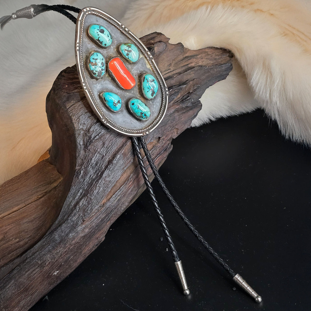 Turquoise 10 Stone/Coral 4 Stone Bolo - BMH29
