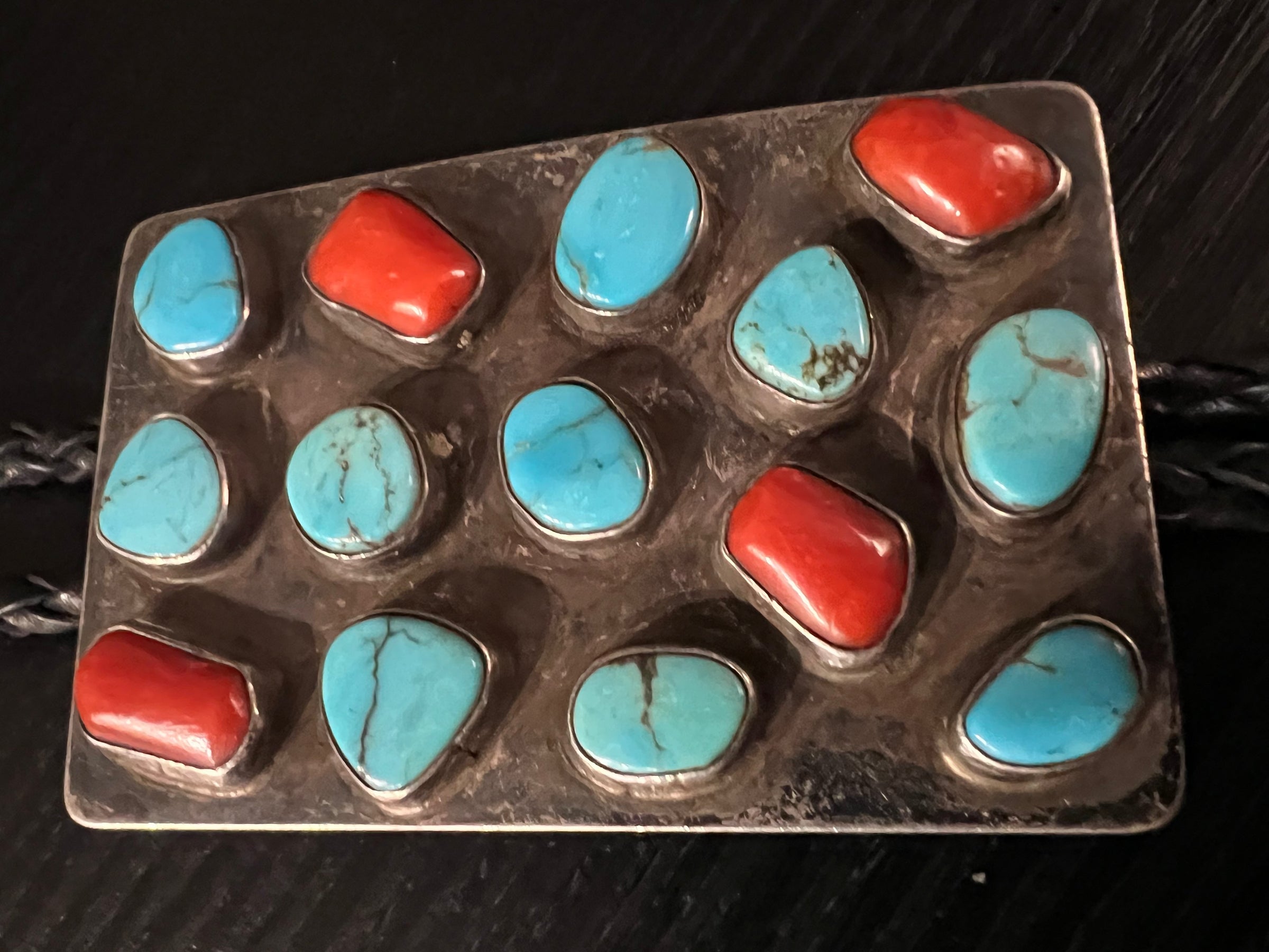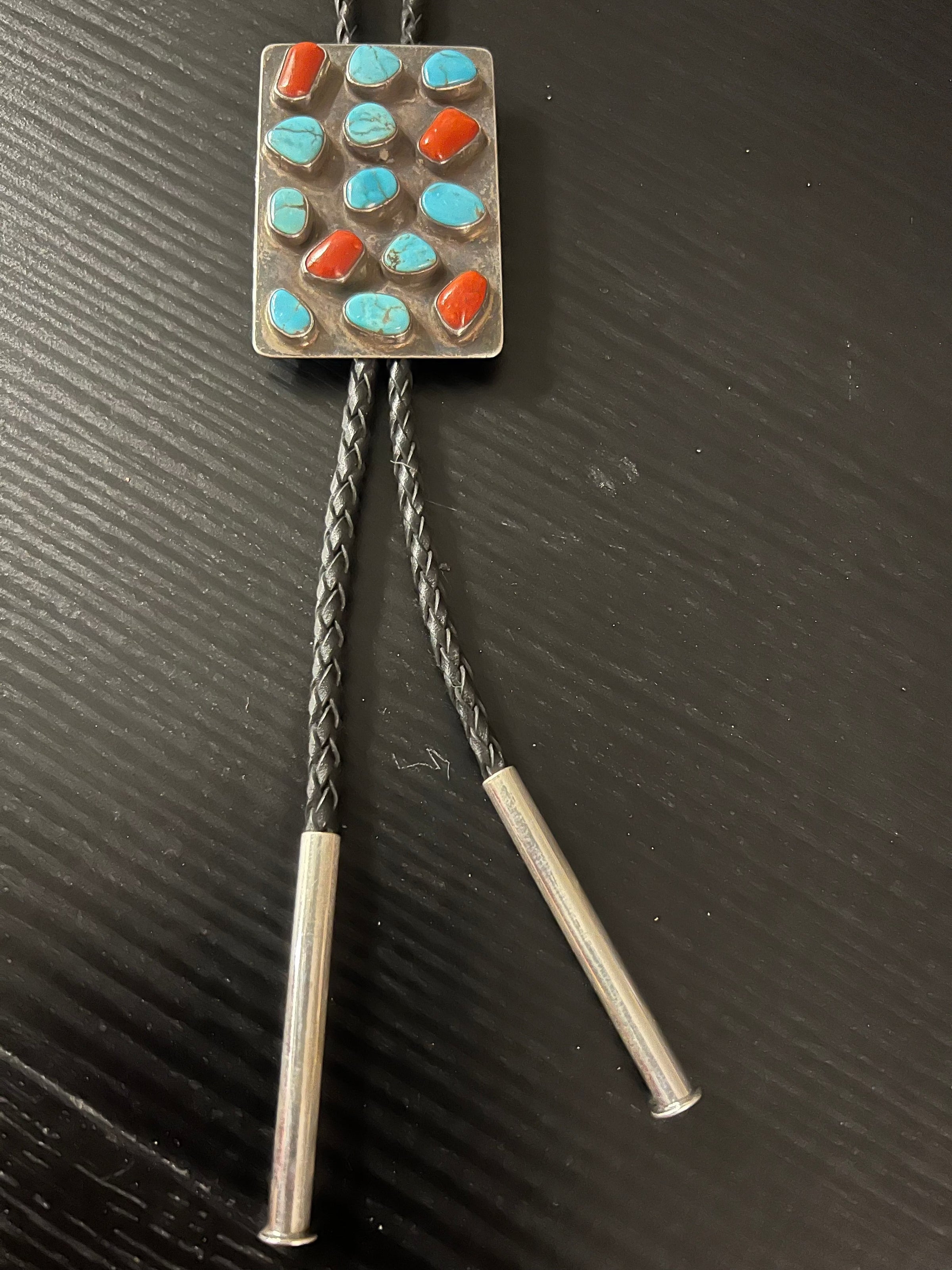 Turquoise 10 Stone/Coral 4 Stone Bolo - BMH29