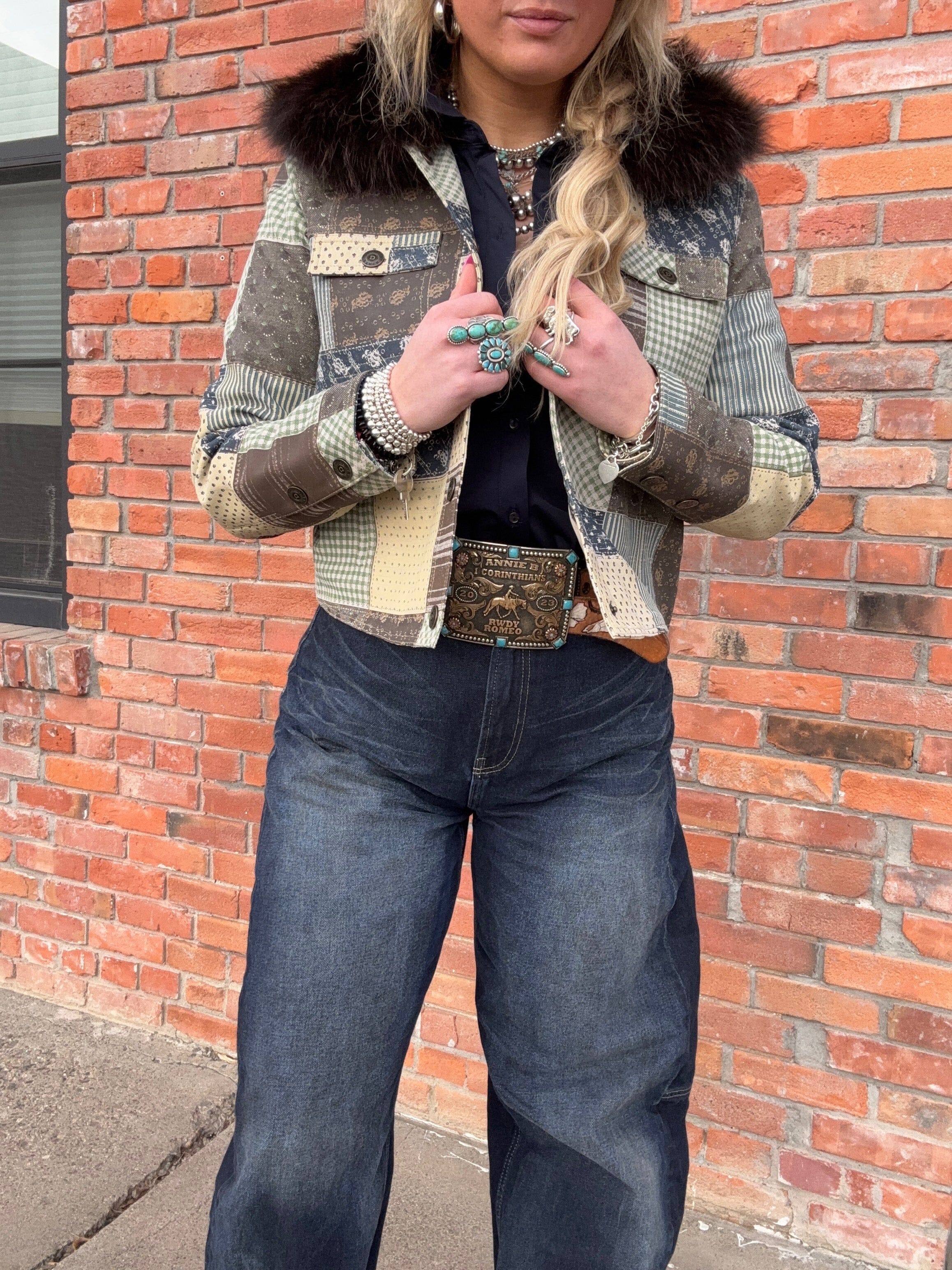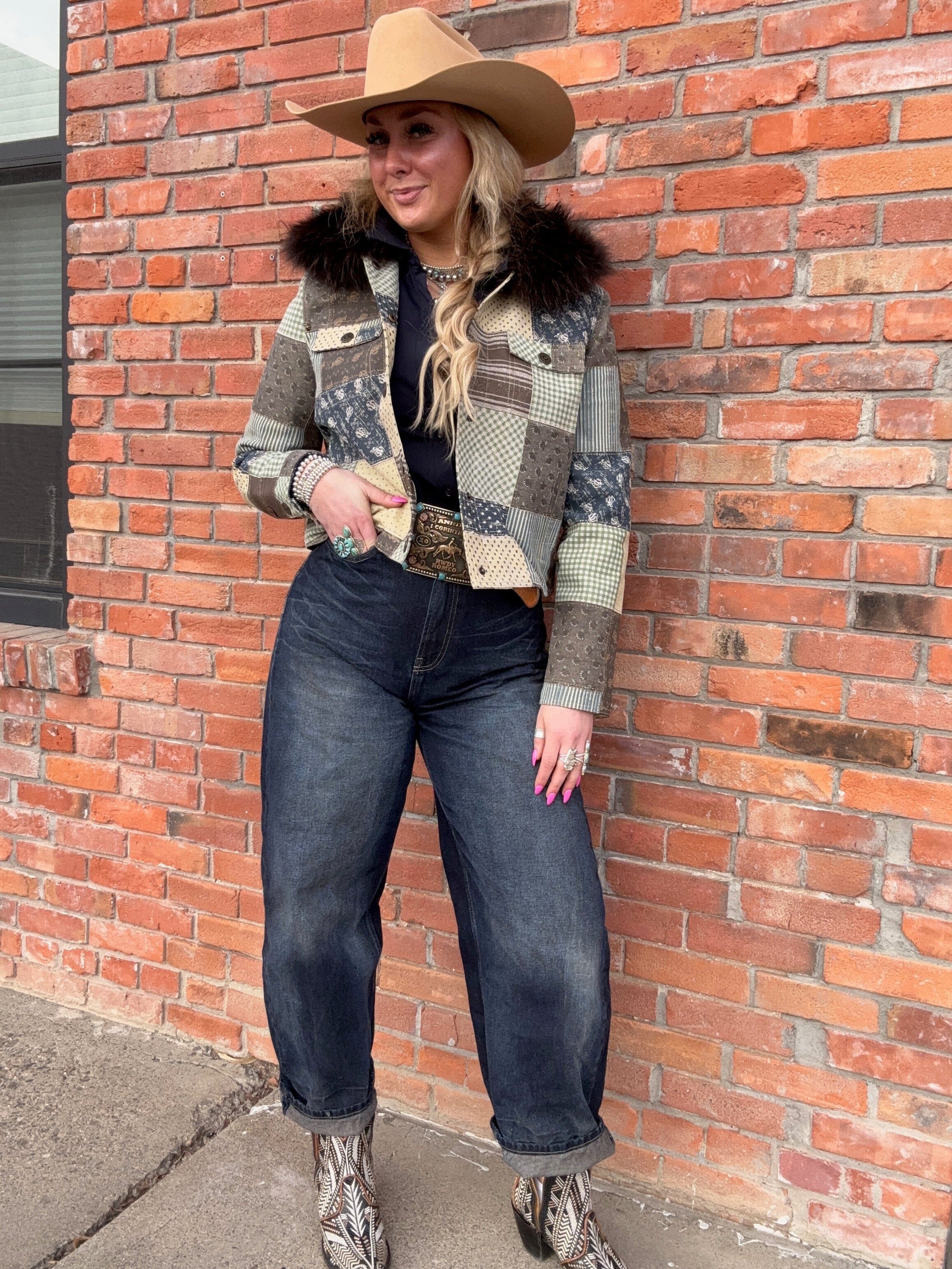 The aesthetic of a beloved vintage quilt, executed it in luxurious leather, and finished with a full-volume fur collar. Extraordinary, unforgettable, and unlike anything else in your wardrobe.