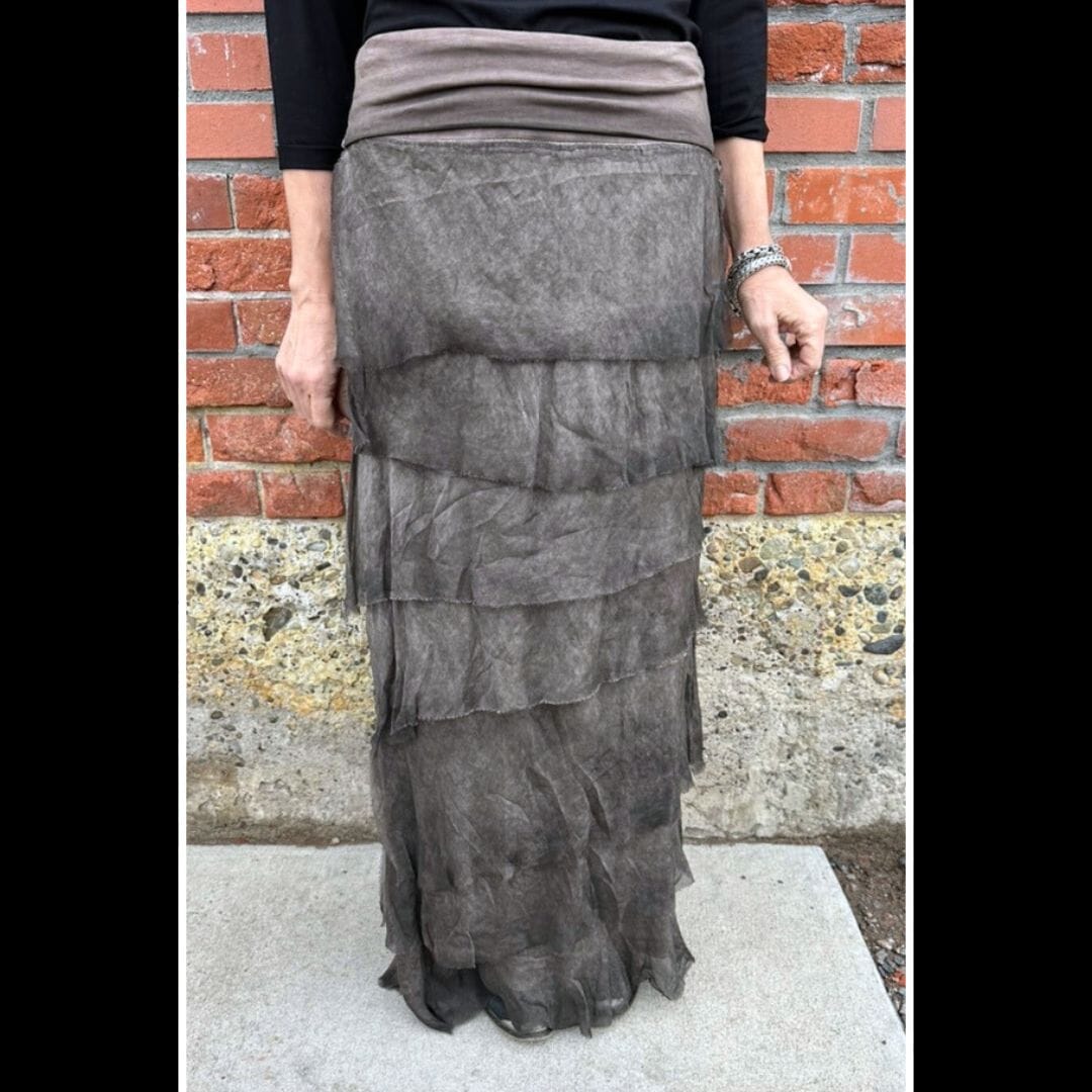 Brown Tiered Mesh Maxi Skirt - 4690BR