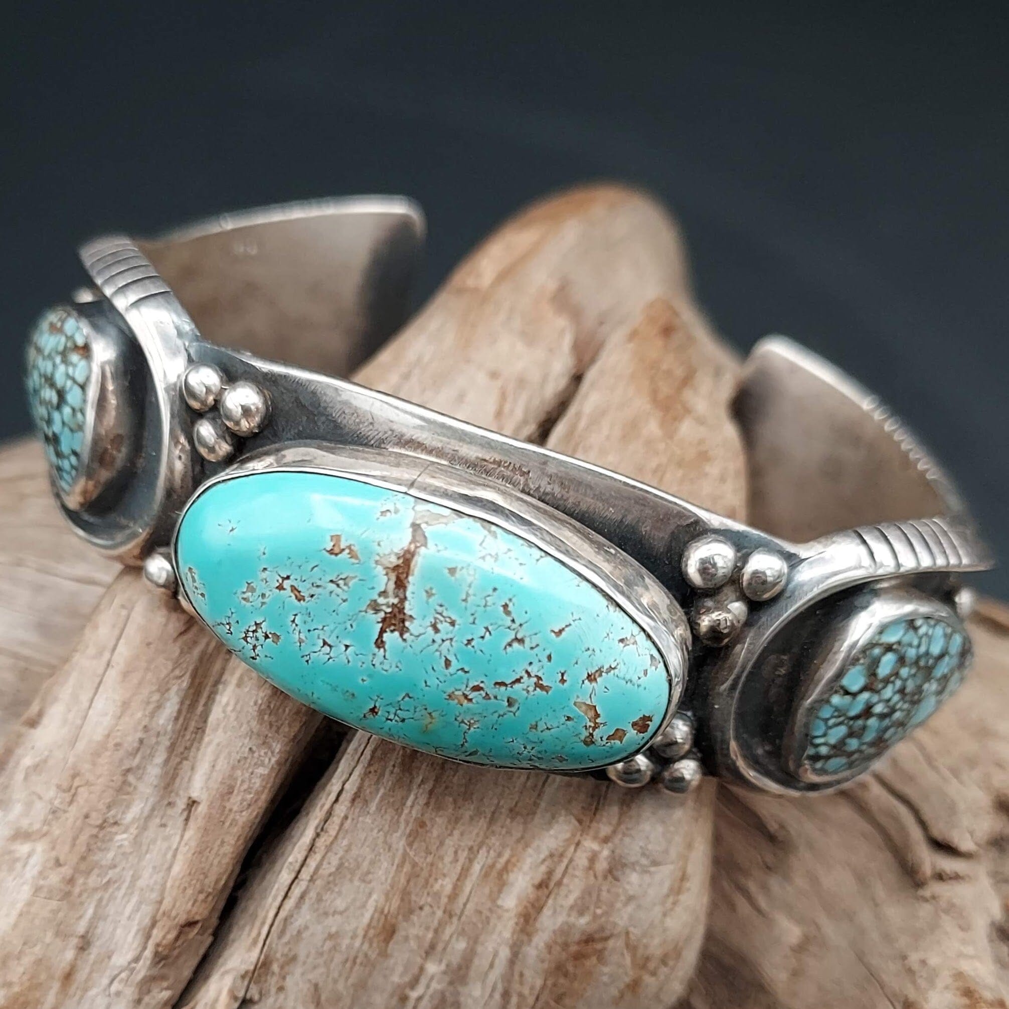 Spider Web Turquoise 3-Stone Sterling Cuff – Redesigned Watchband - CFNW2
