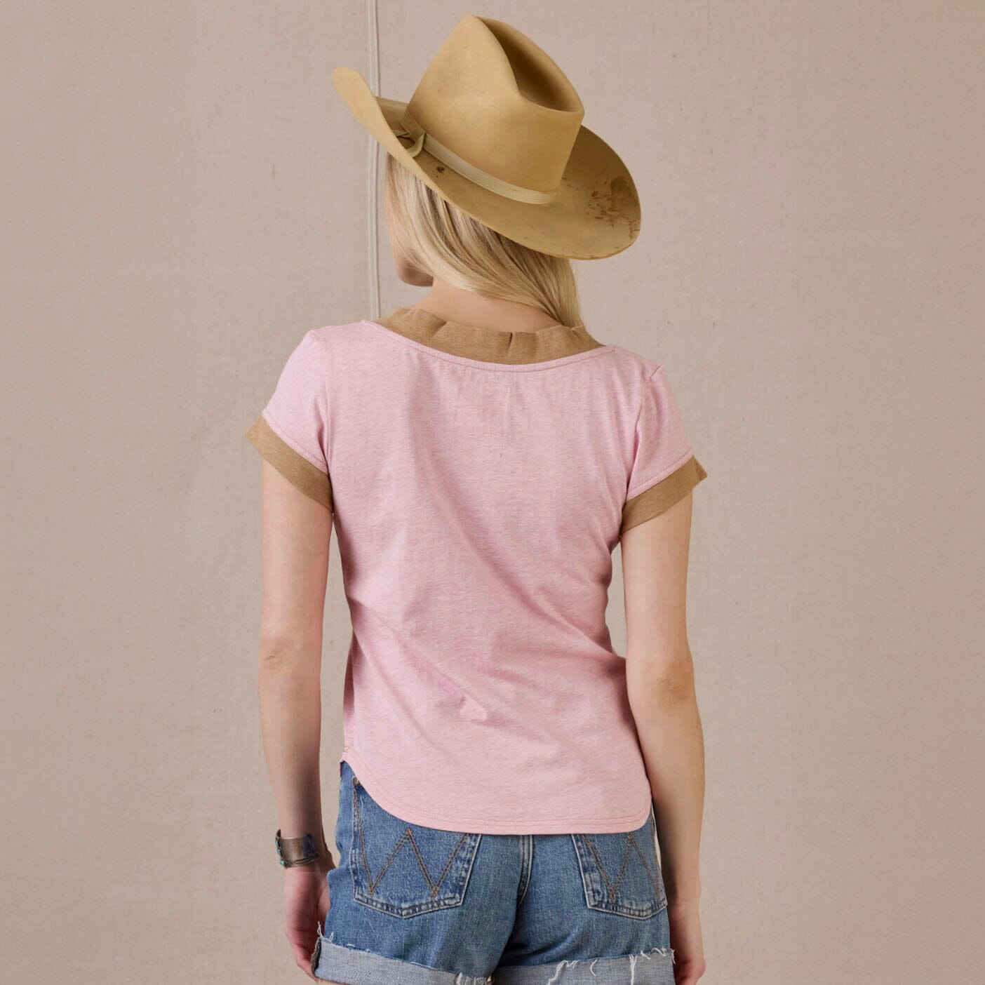 The darling two-toned top has become an instant favorite. Something about the juxtaposition of a razor sharp barb on a soft pink tee, and boldly embellished with rhinestone crystals appeals to both your fierce and your feminine side. Charming, with an edge.