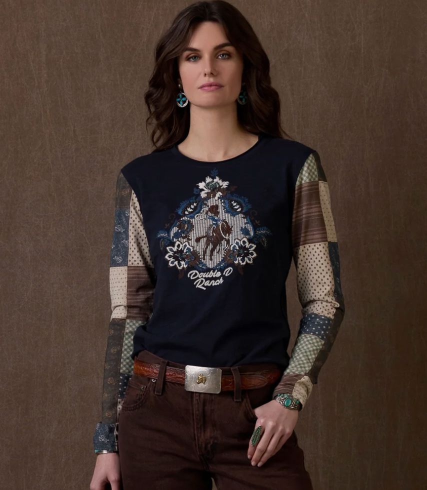There’s a lot to love about this long-sleeved tee. This classic-cut cotton tee captures all the signature elements of the Wash House collection, boasting the aesthetic of quilted sleeves that complement the rodeo-rider damask element from one of the collection’s custom prints.
