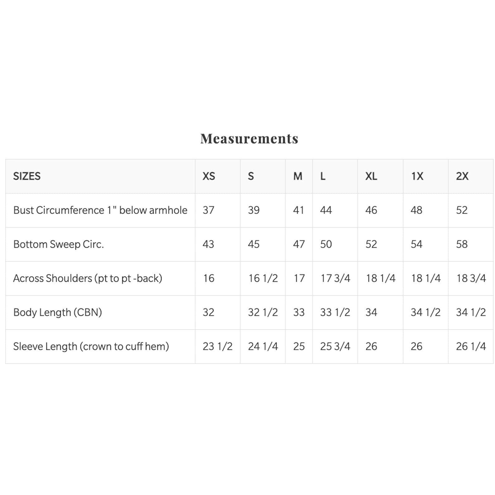 - size: S-1X