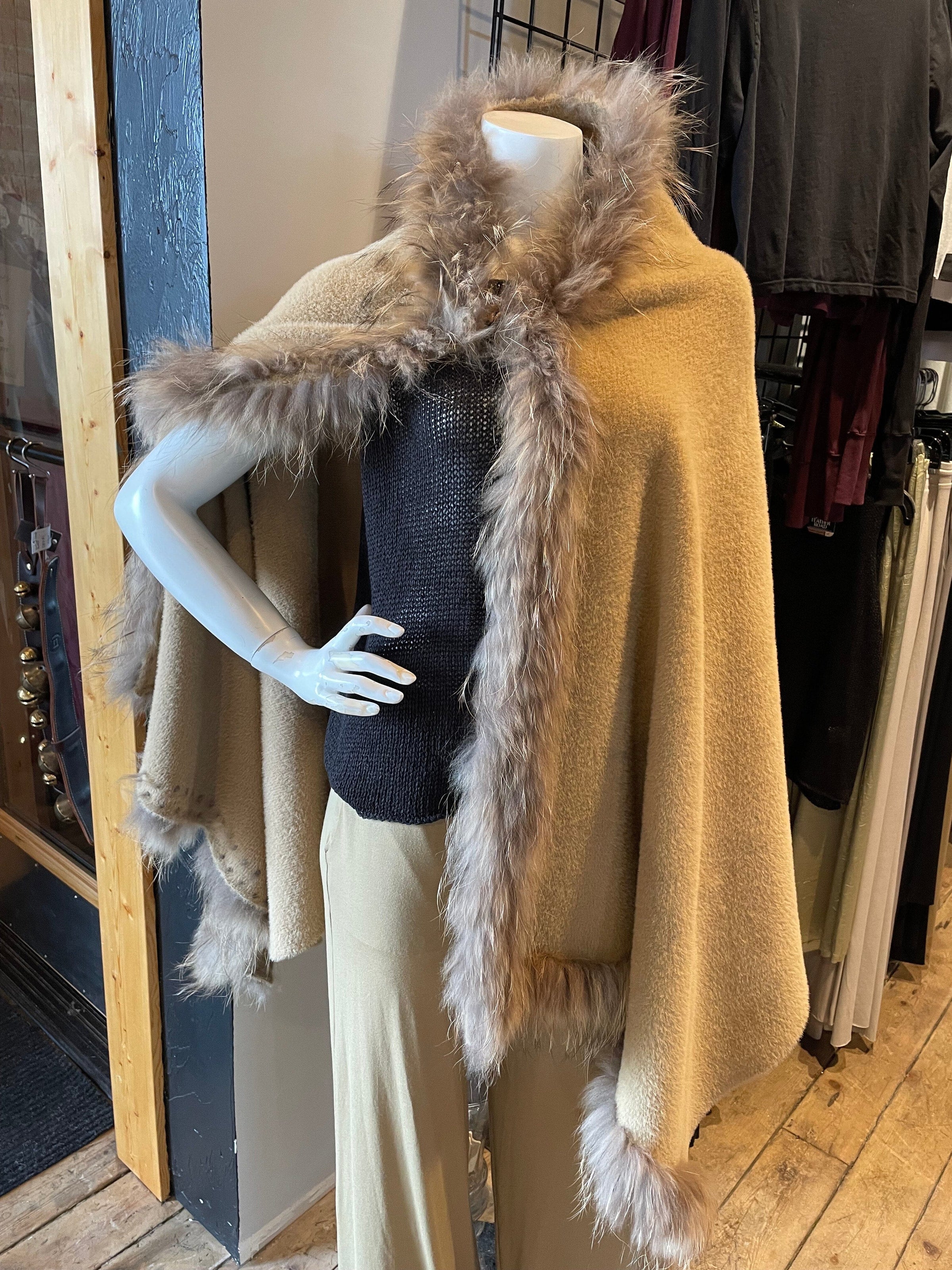 Wool/Raccoon Cape - Camel - CPMK-CM