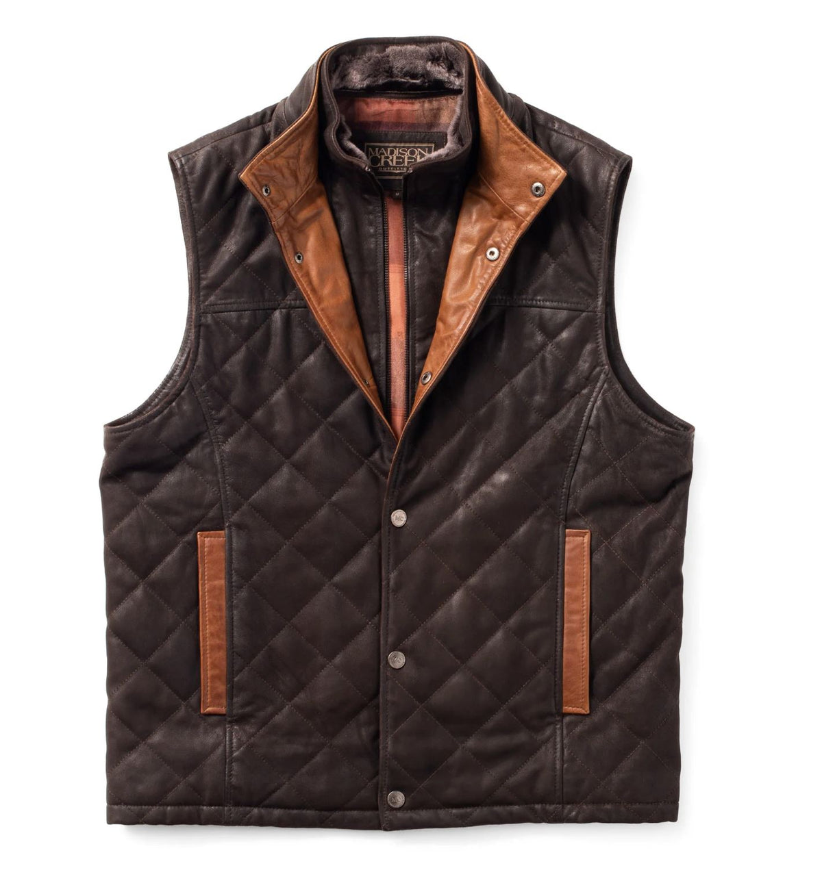 Beaver Creek Men's Leather Vest - Bourbon - Madison Creek - 46BOUR