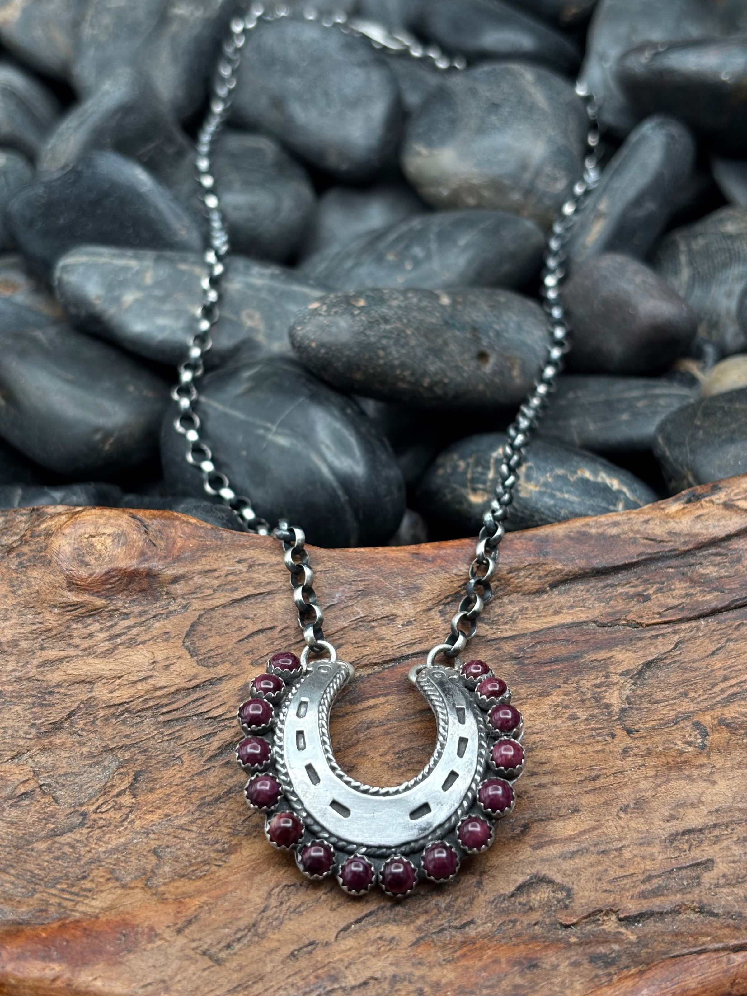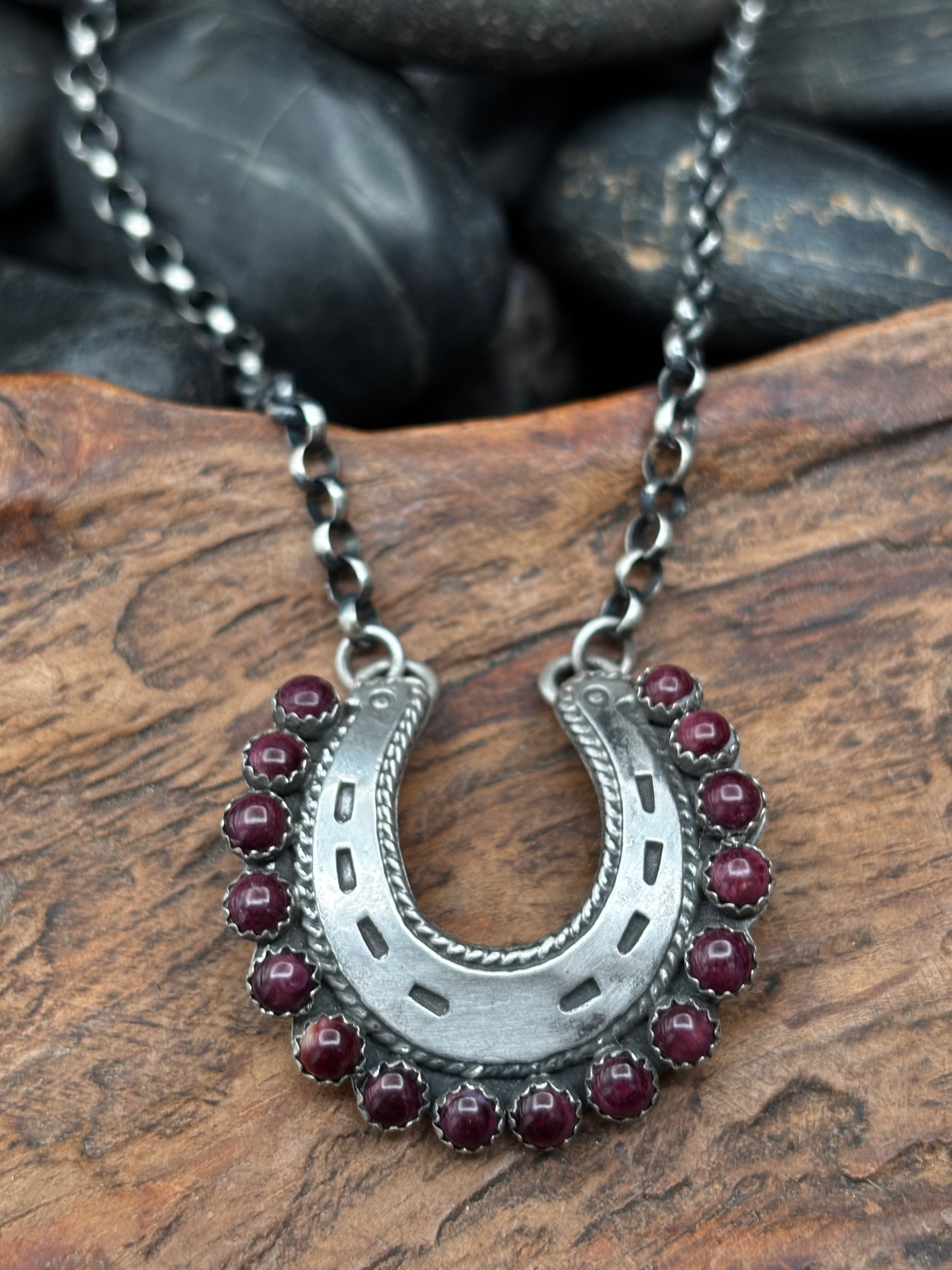Sterling Silver Purple Spiny Oyster Horseshoe Necklace - NAZ44