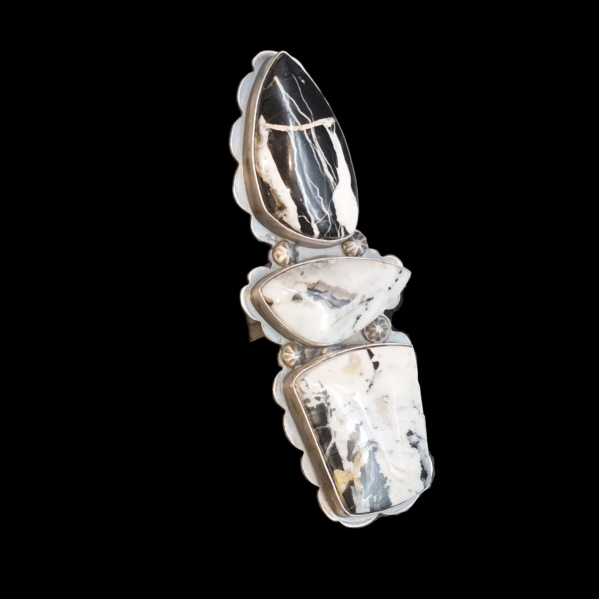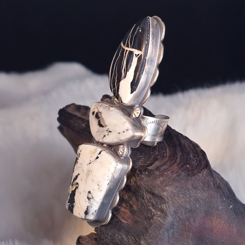 3-Stone White Buffalo Ring - Size 8 - Adjustable - RAZ3