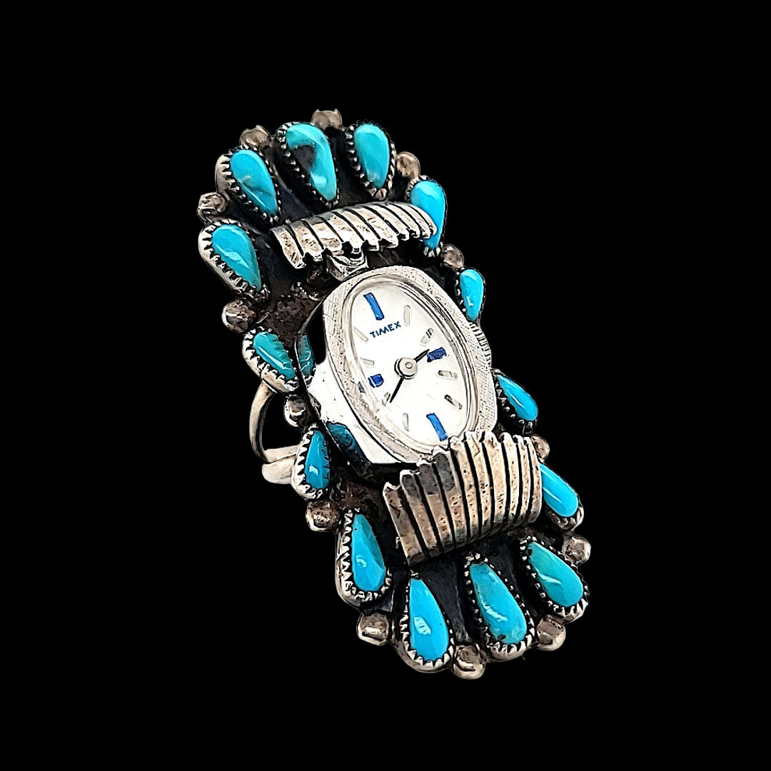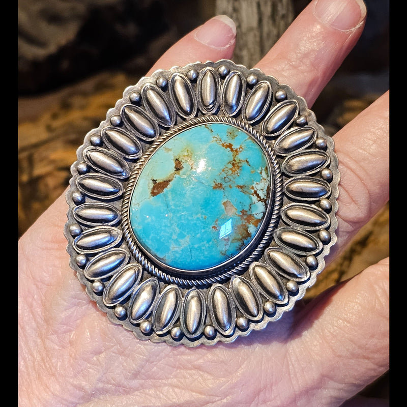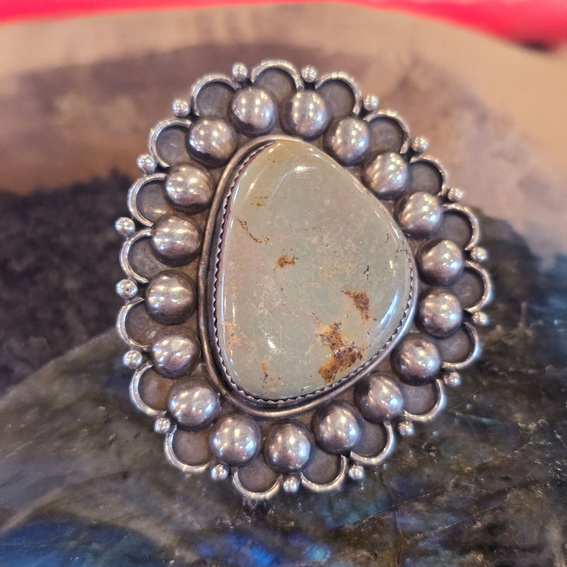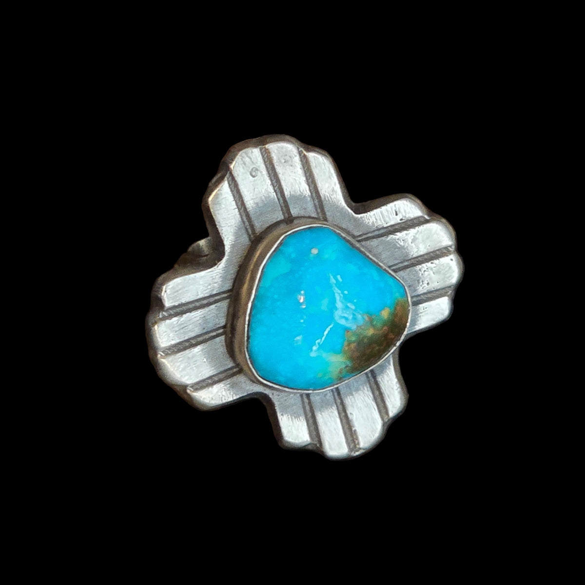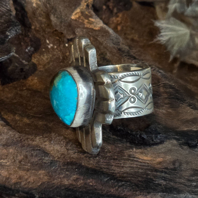 Turquoise & Sterling Silver Sun Ring - Size 8.5 - RCB5
