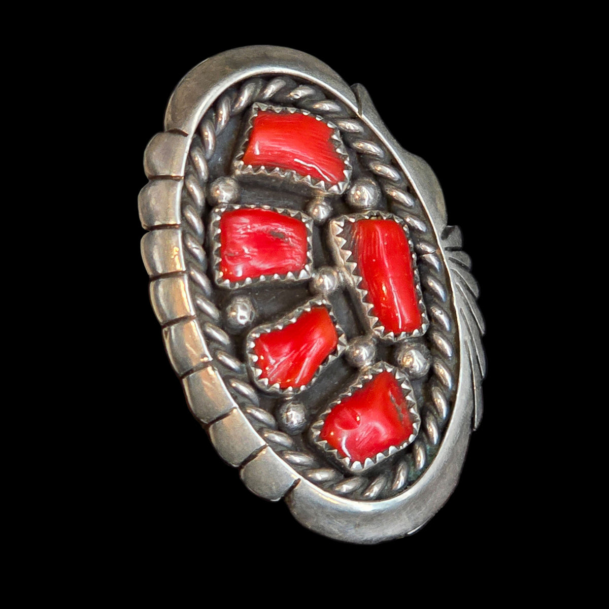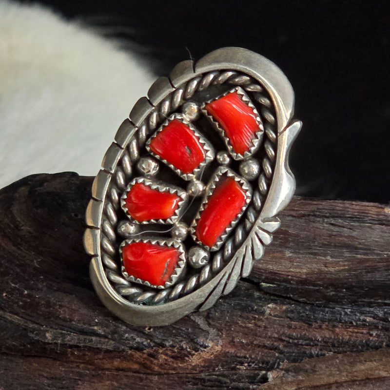Red Coral Oval Sterling Ring - Size 6.5 - RMH196