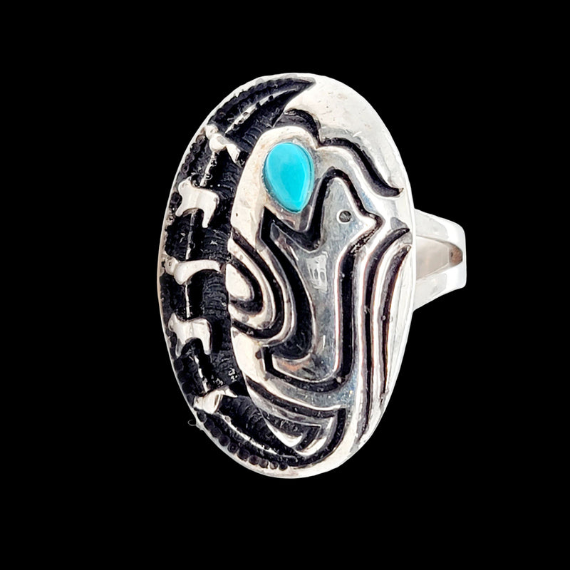 Oval Turquoise; Sterling Ring - Size 6 - RMH168