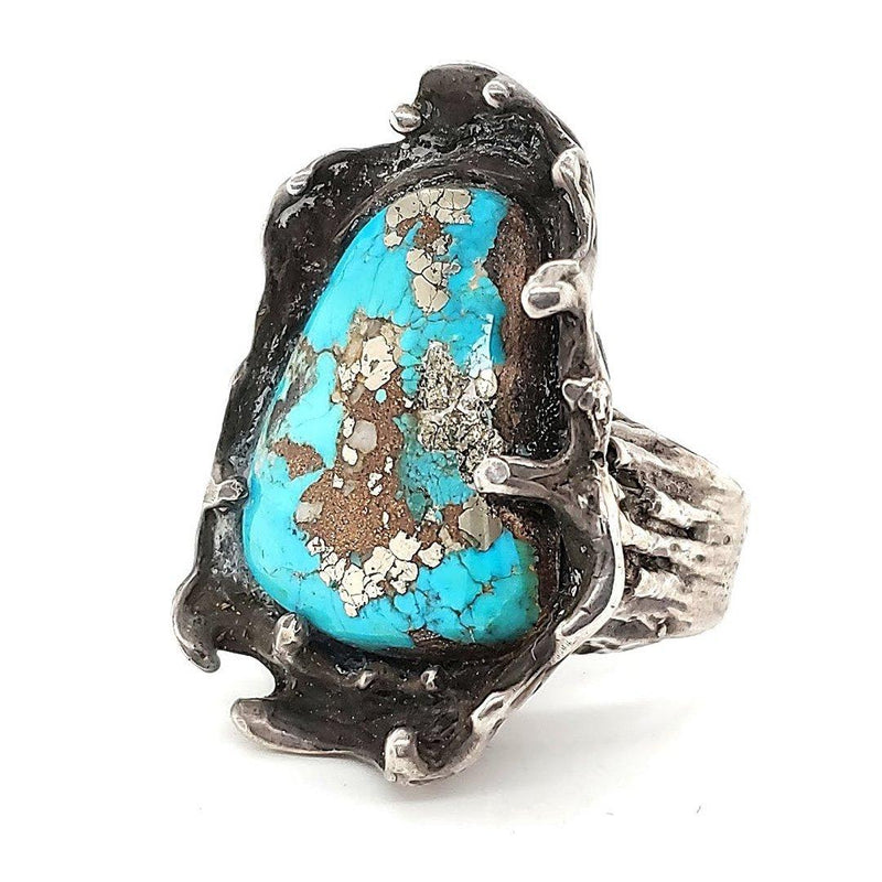 Royston Ribbon Boulder Turquoise Ring - Size 10 - RCJW13