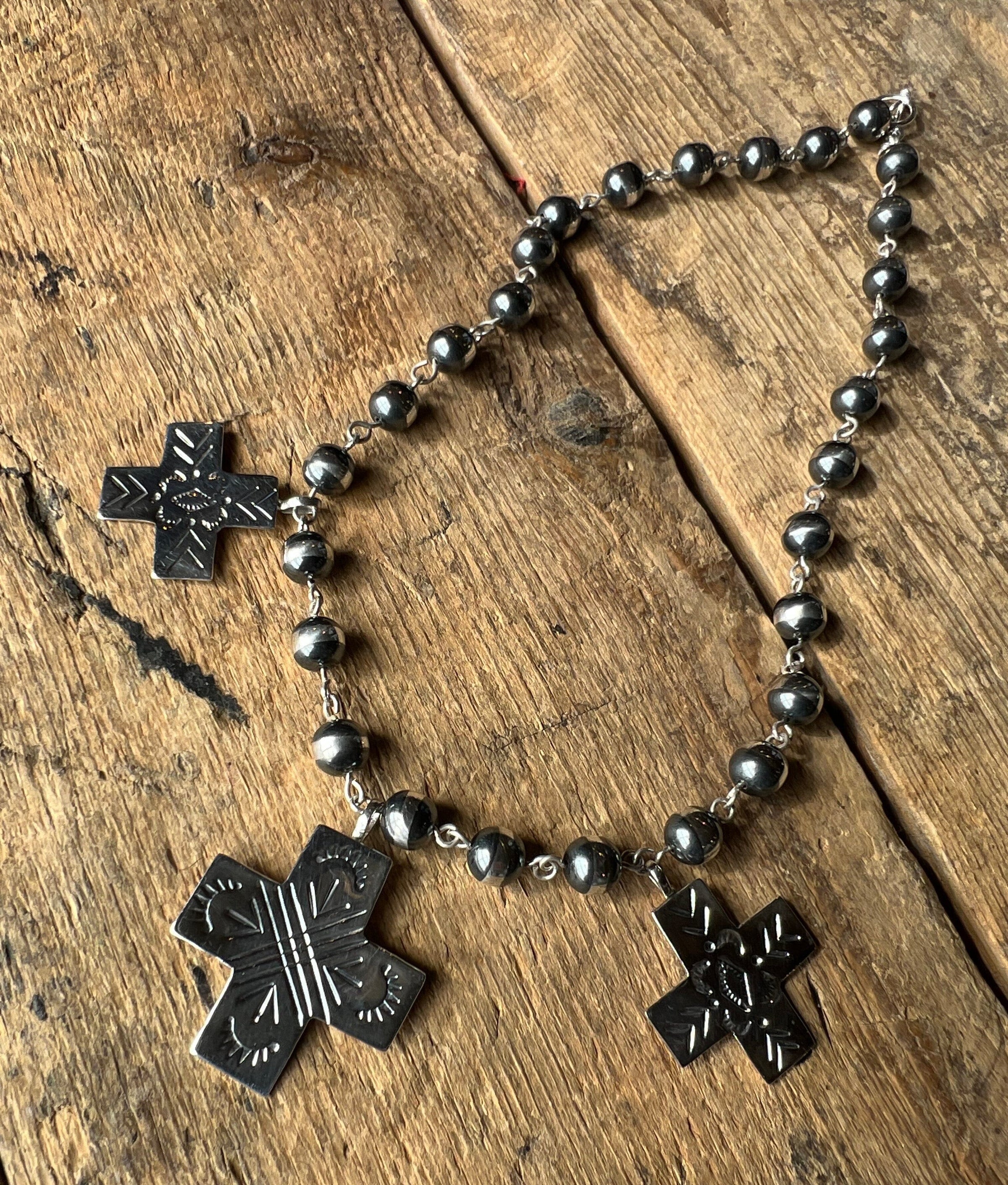 16" 8mm sterling pearl with 3 sterling crosses