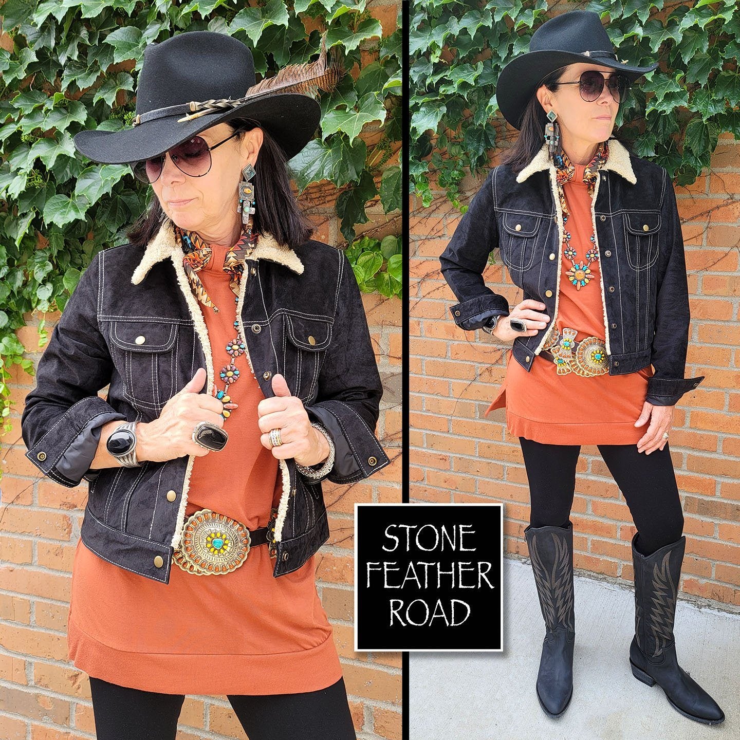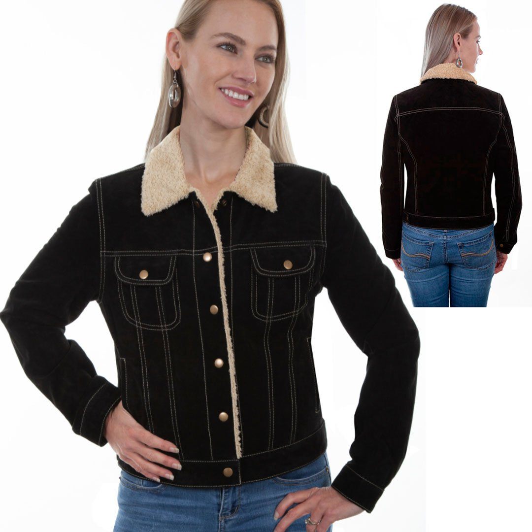 Black Boar Suede/Faux Shearling Jacket - Scully - JKSY16