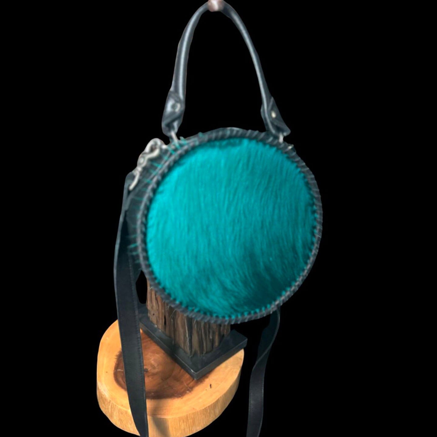 Black/Turq. Green Hair on Hide Canteen Bag
