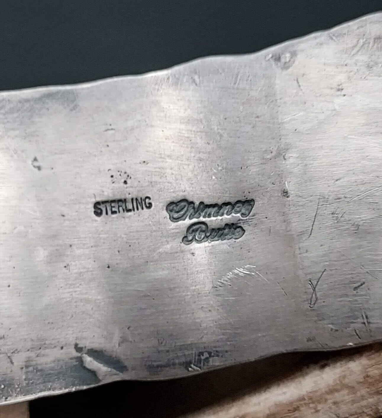 The cuff is crafted from solid sterling silver with intricate hand-worked engravings along the 1 1/8" wide band.