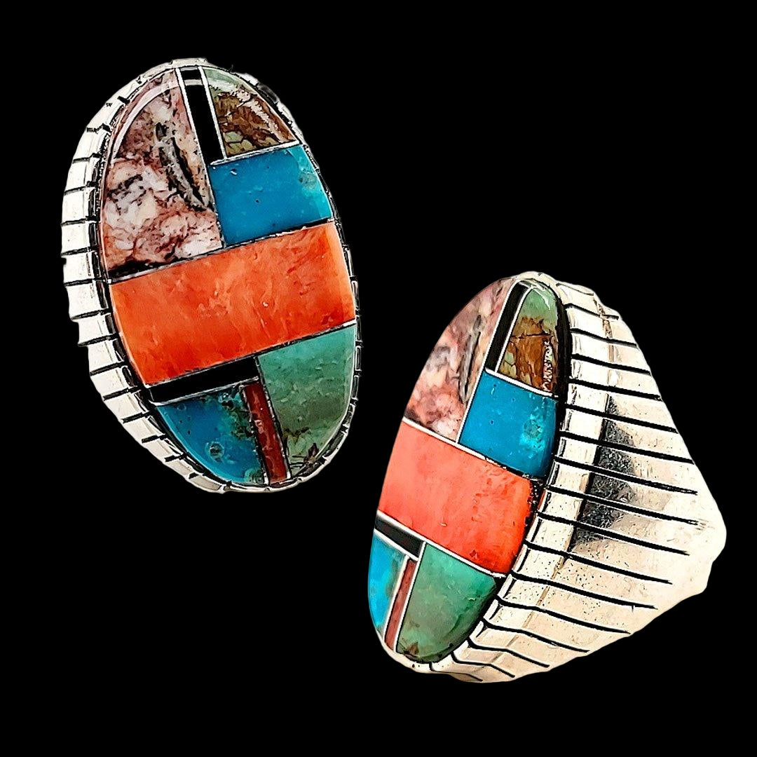 Inlaid Multi Stone Ring - Size 12 - 1-3/8” x 3/4”
