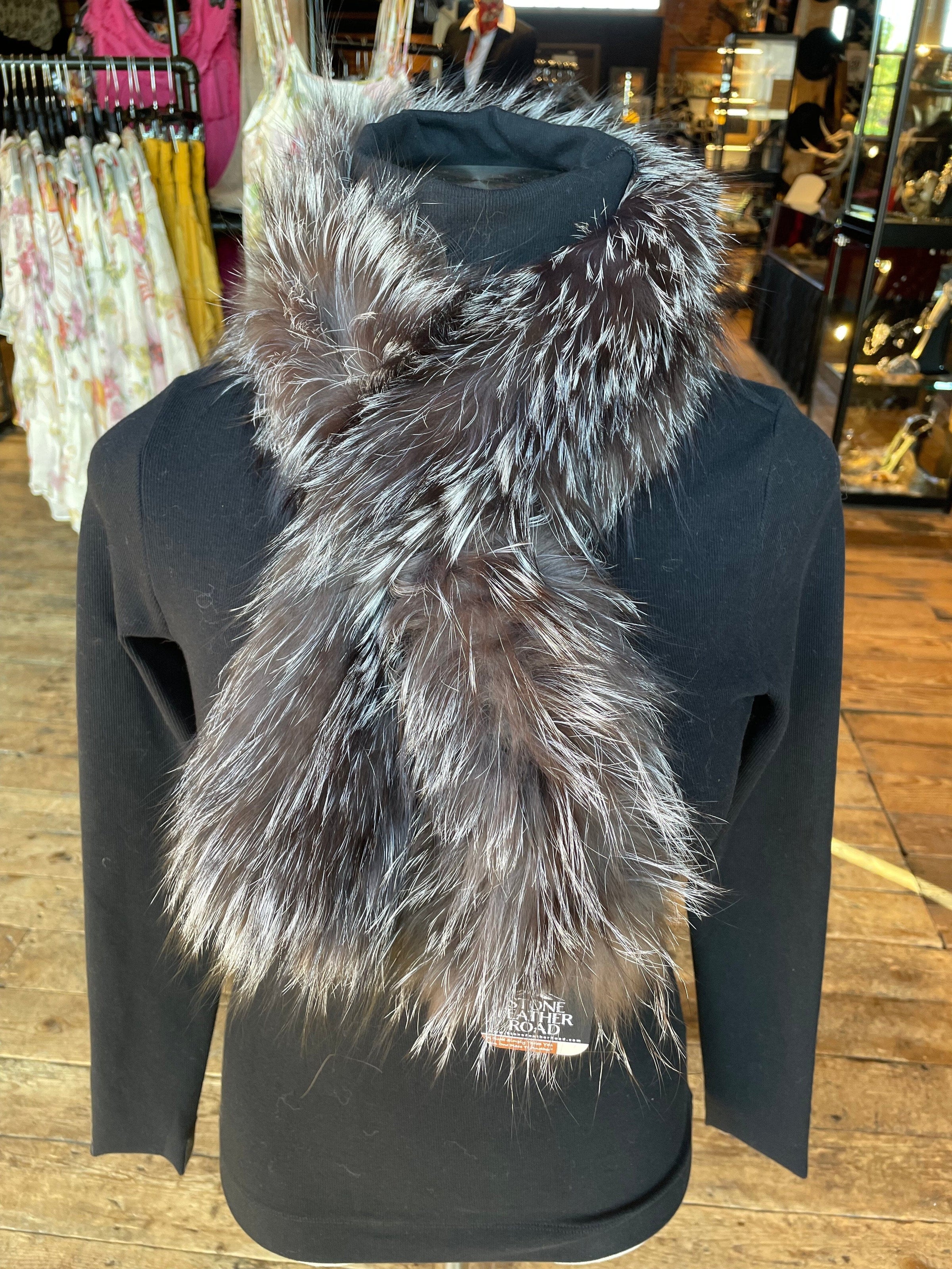 Silver Tipped/Taupe Knit Fox Scarf/Collar - 5318KFC