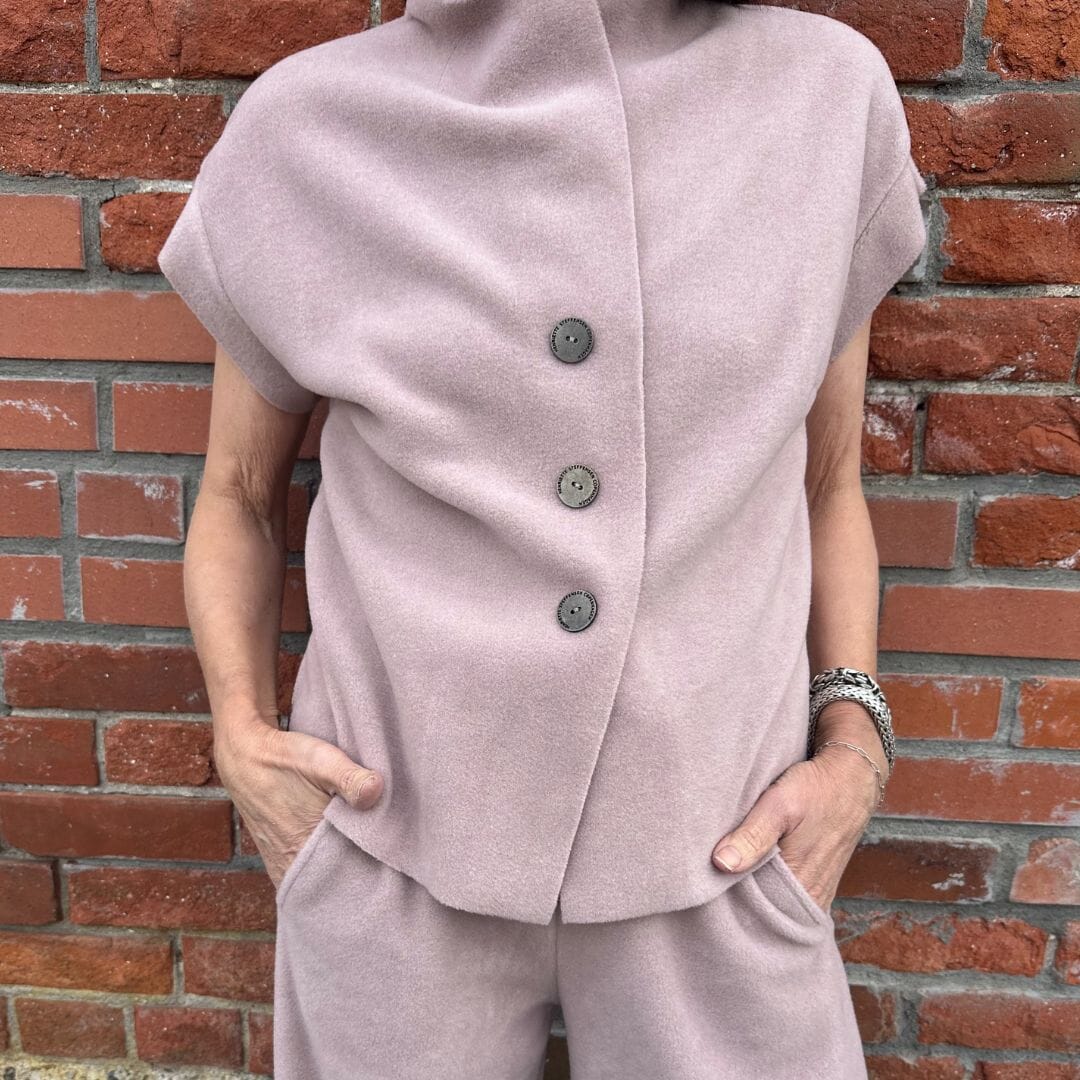 This soft vest is perfect for in-between seasons to keep warm. Wear it over a nice shirt and close it with a belt, for a more feminine look. You can choose between different colors and the boxy shape makes this vest suitable for both casual and everyday wear.