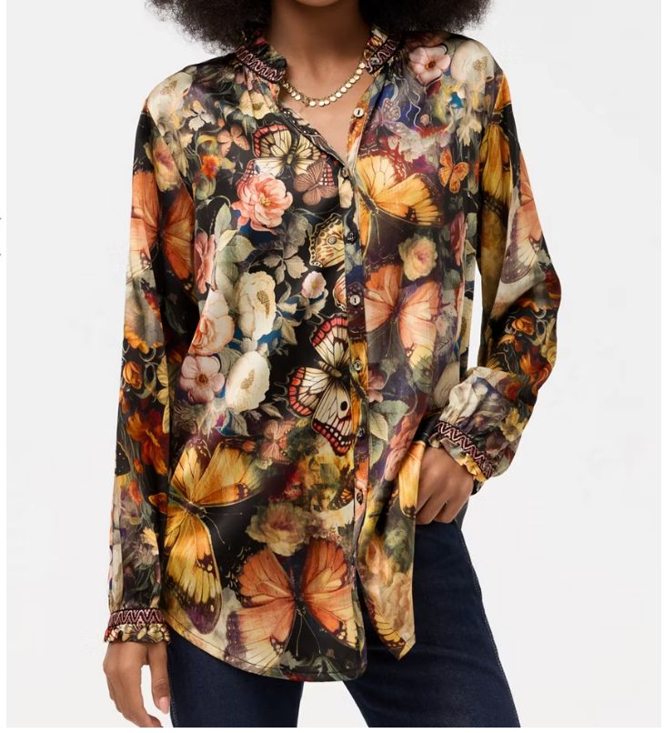 Crafted from a sumptuous silk blend with a hint of stretch, the Yoella Tunic is embellished with a vintage-inspired floral motif. Designed with gathers and ruffles at the neck and sleeves, this button-down shirt is accented with intricately embroidered trim. Pair with a rich jewel-tone skirt and easy flats for a classic timeless ensemble.