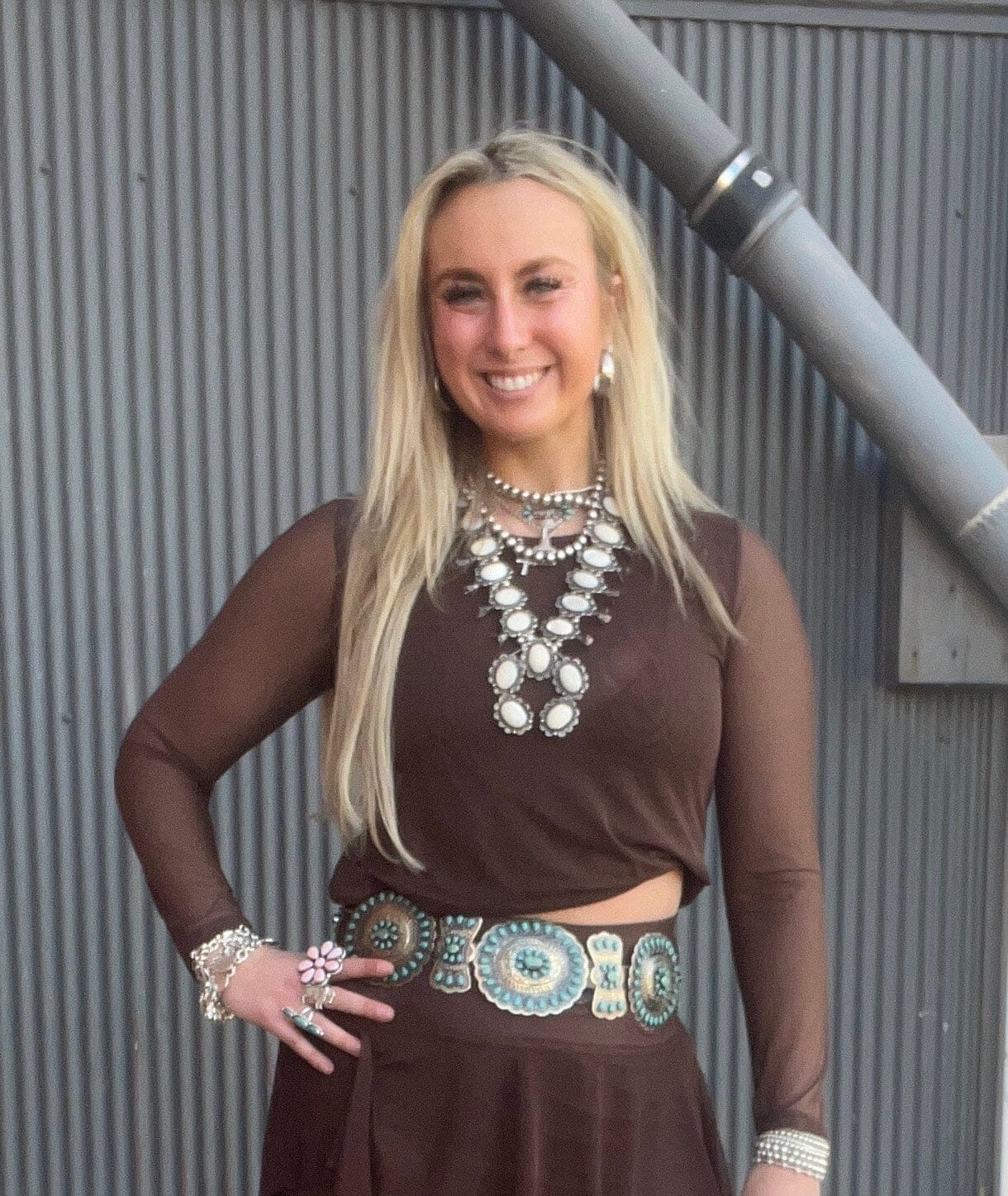 Brown Mesh Long Sleeve Crew - 4593BR