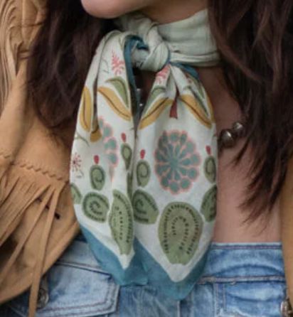 A blend of mostly cotton, but enough silk to keep it sheer and lightweight. These bandanas are super-duper soft and ready to wear straight from the packaging! The standard cotton bandana is 22"x22", these are made a few more inches longer to have that extra room to tie with or to add a scarf slide.