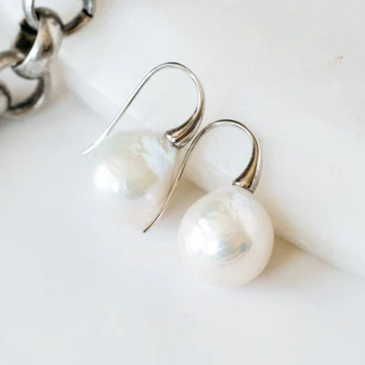 Lustrous White Freshwater Cultured Edison Pearl Drop Earring on Sterling Silver French Wire. Approximate 1" Drop. A Customer Favorite!!!