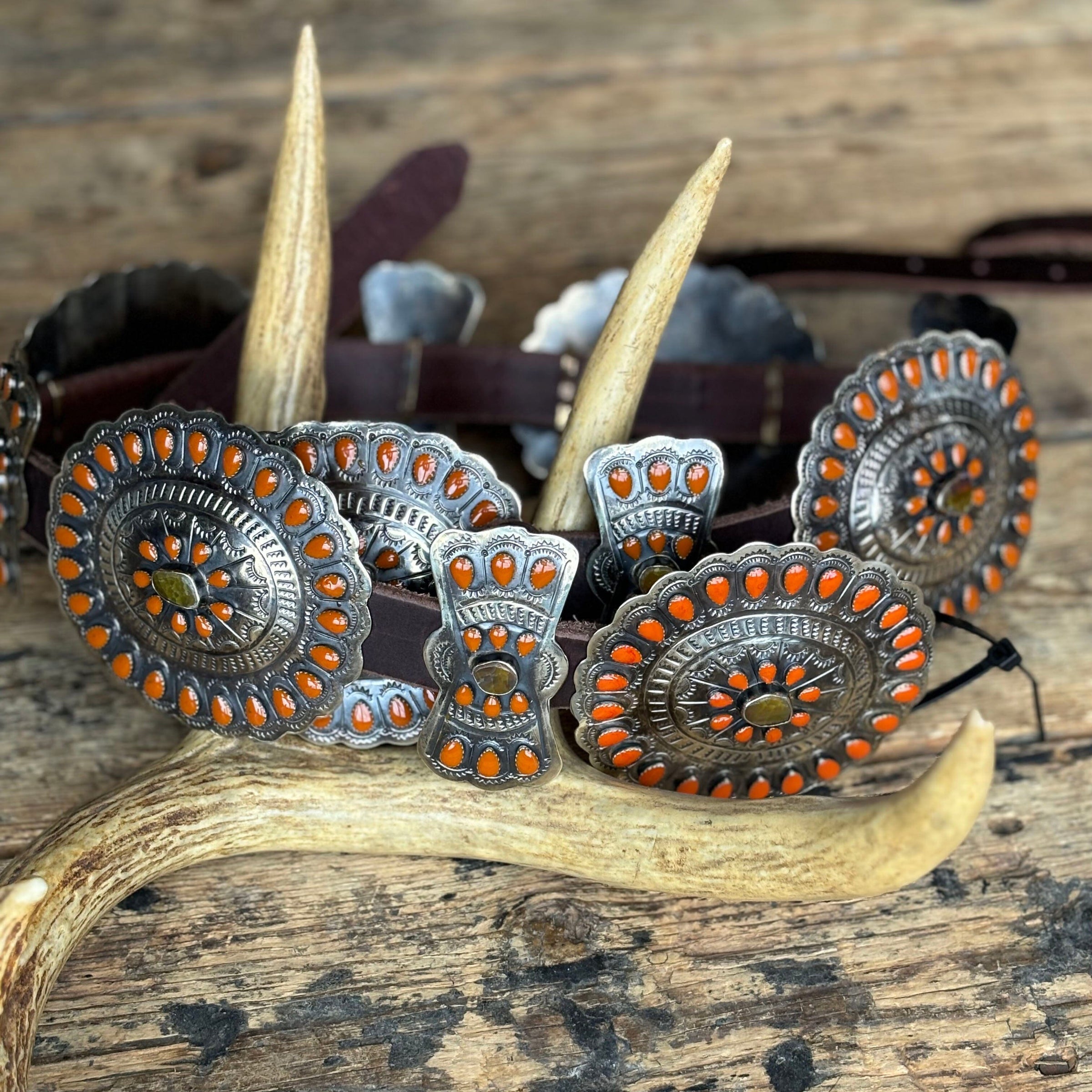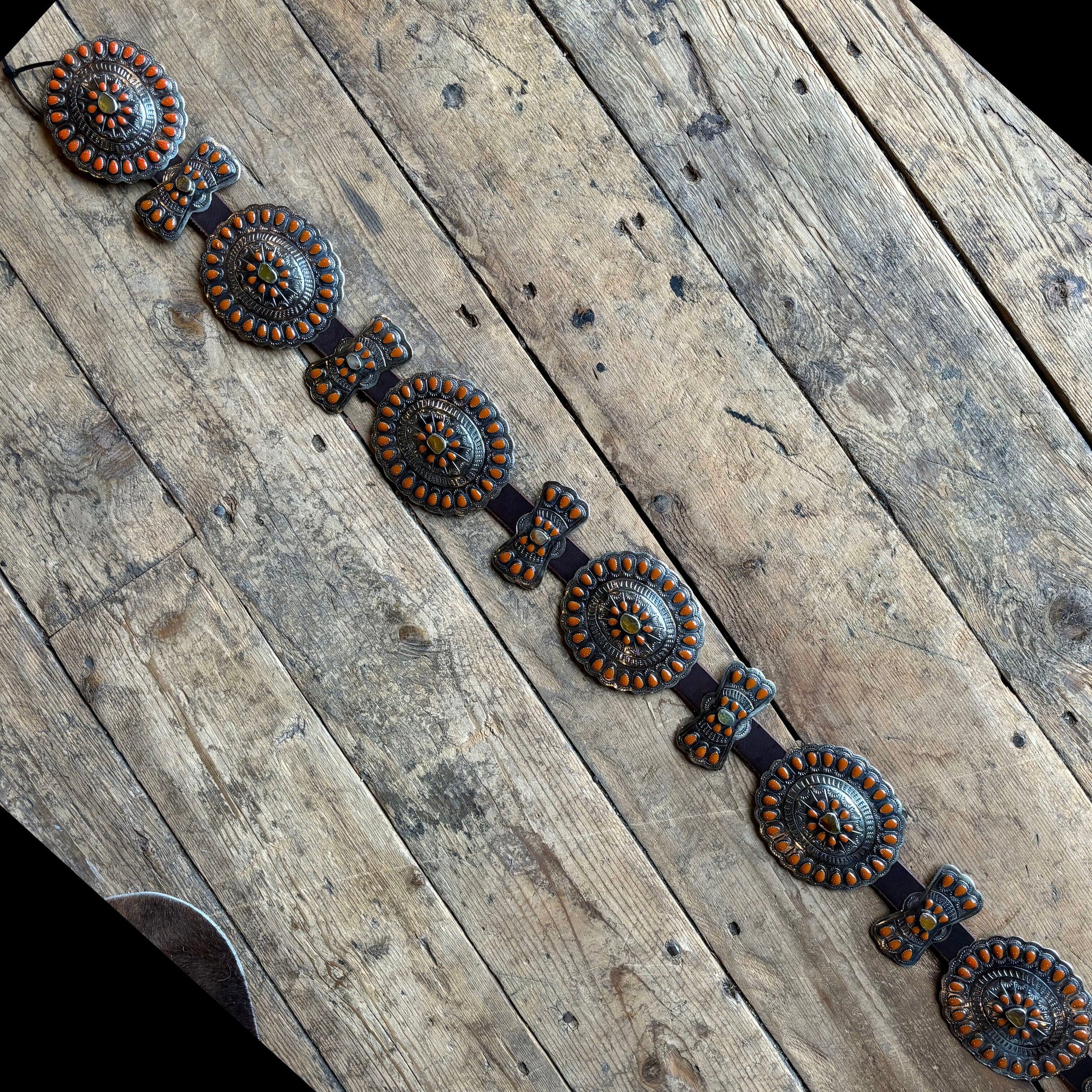 German Silver / Citrine & Burnt Orange Enamel Belt - BBAR27