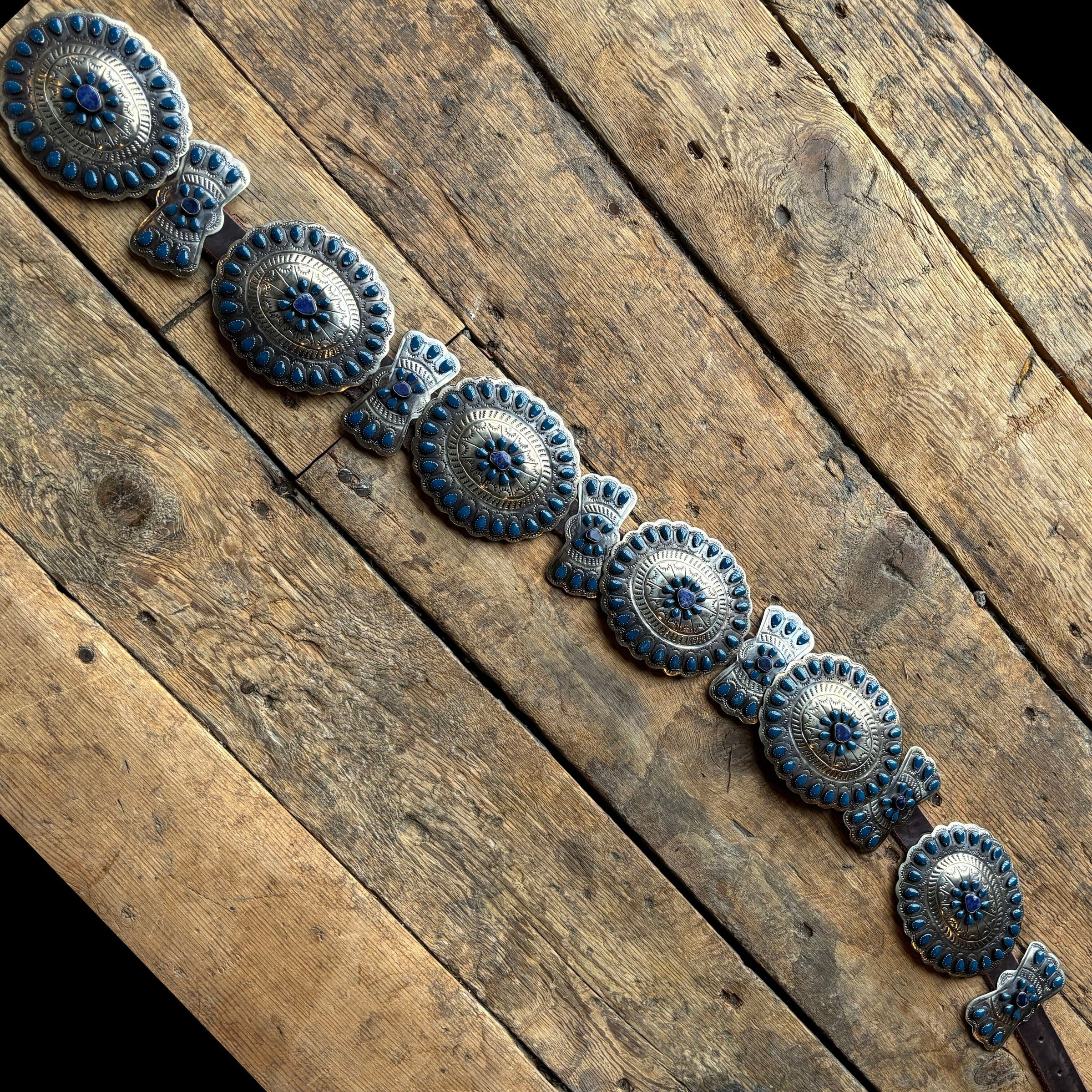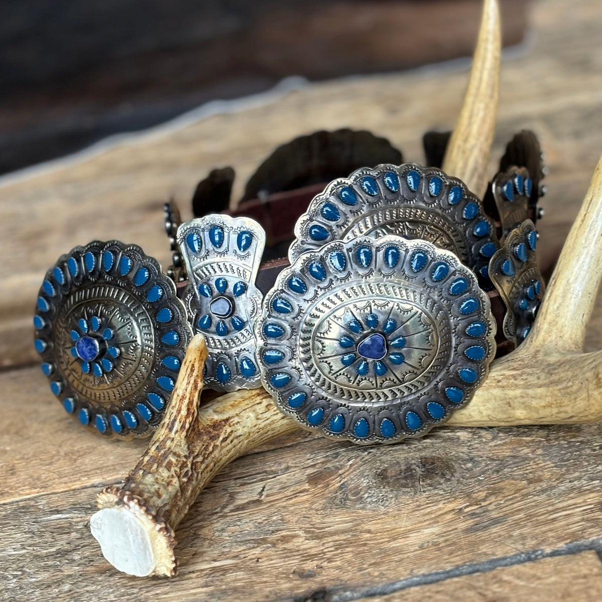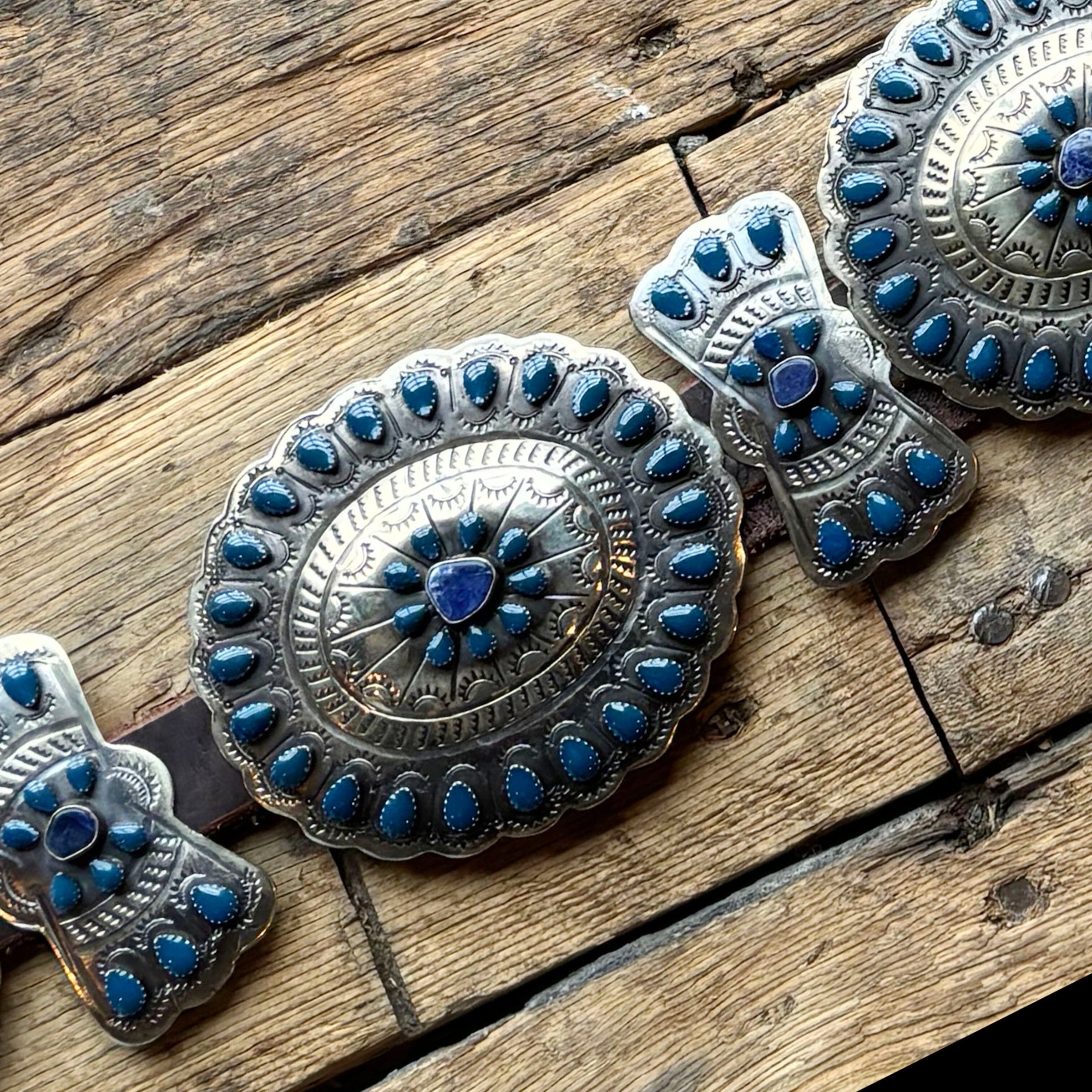 German Sllver / Dark Blue Enamel / Stone Concho Belt - BBAR29