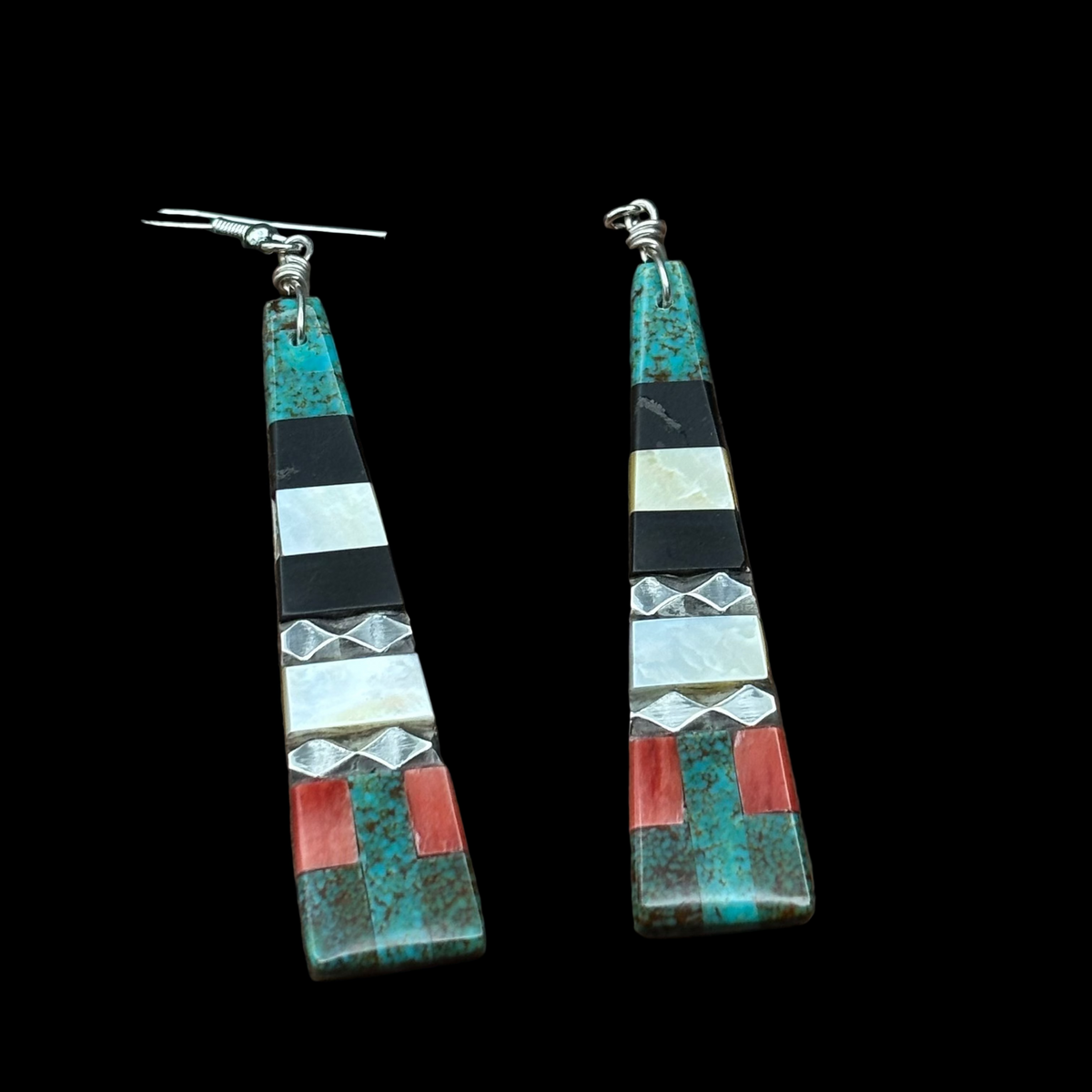 Multi Stone Inlay Earring - EAZ190. Measures 3" in length.