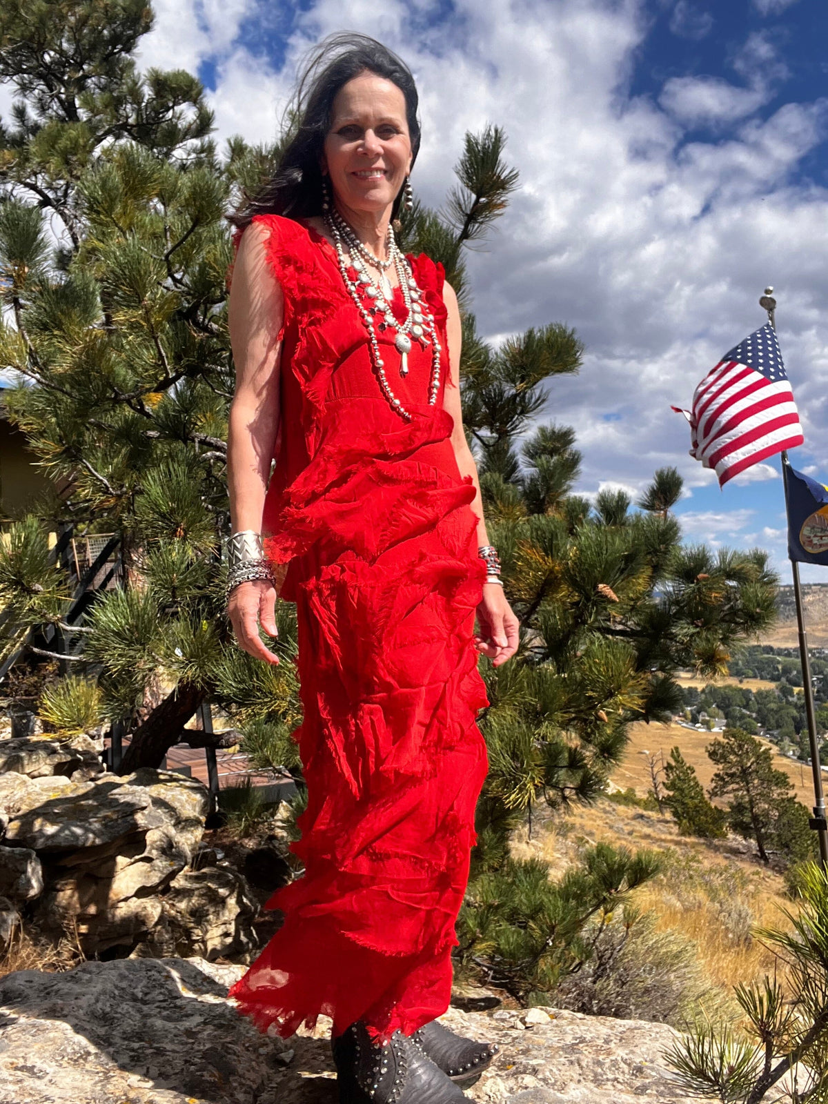 Red Tiered Silk Maxi Dress - DGG2-RD