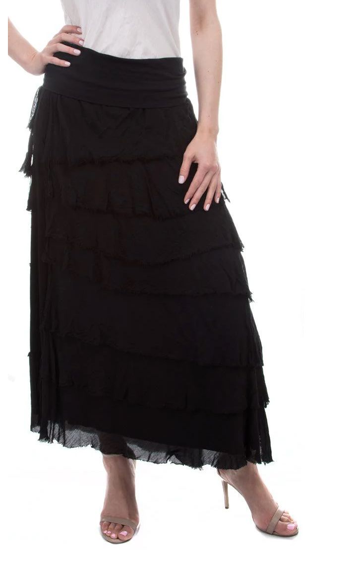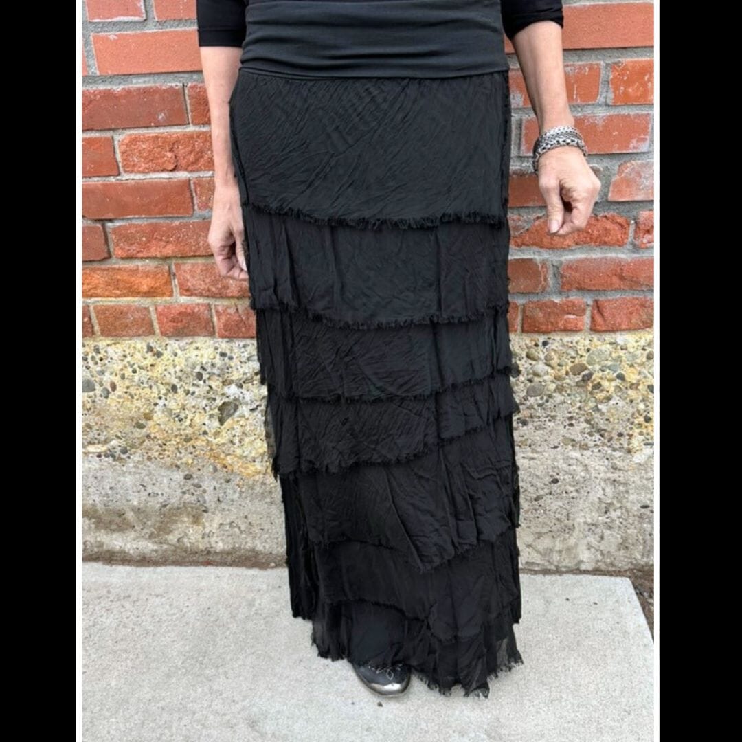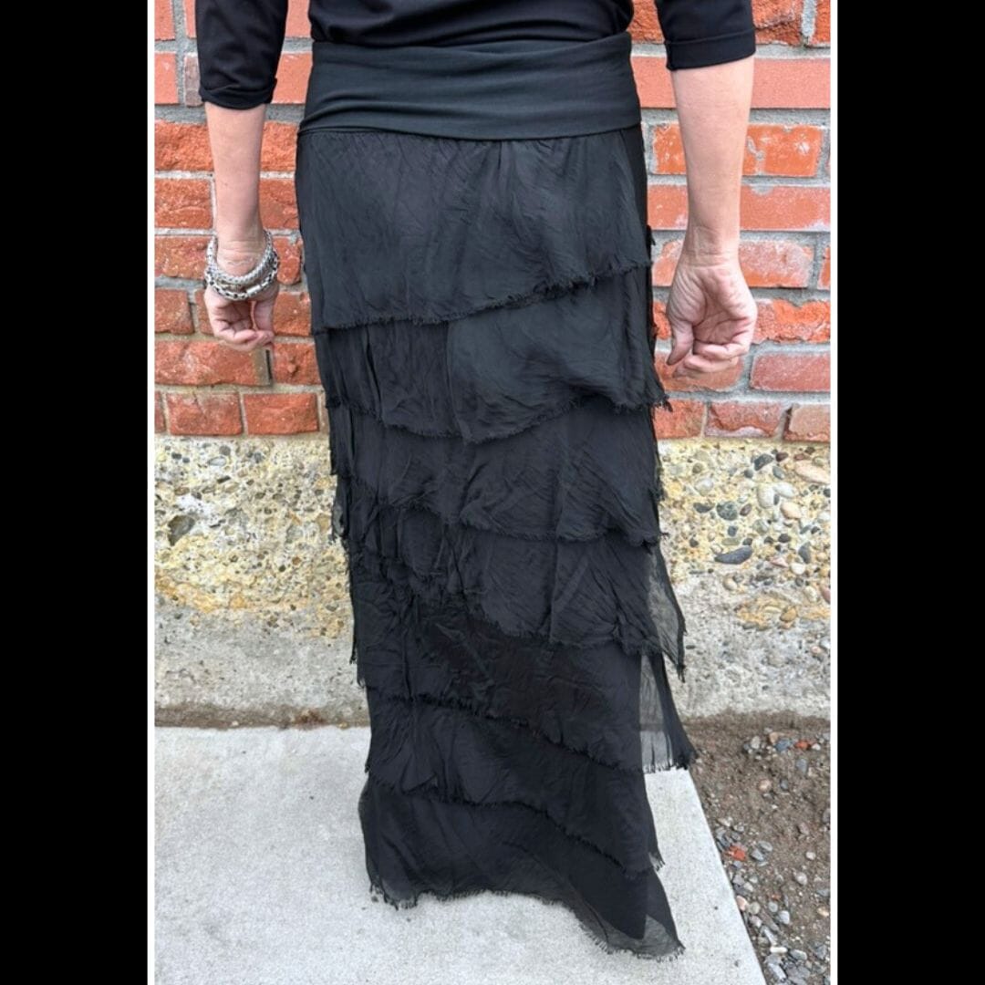Black Tiered Silk Skirt - KGG1-BK