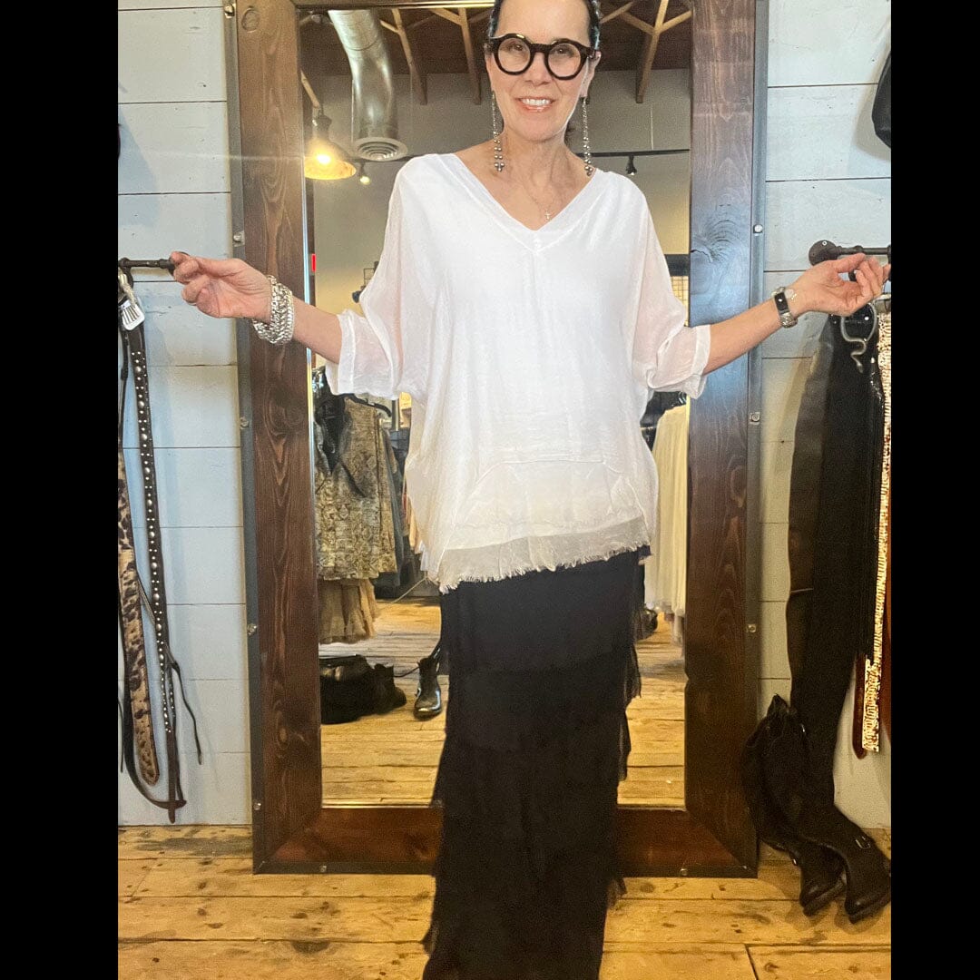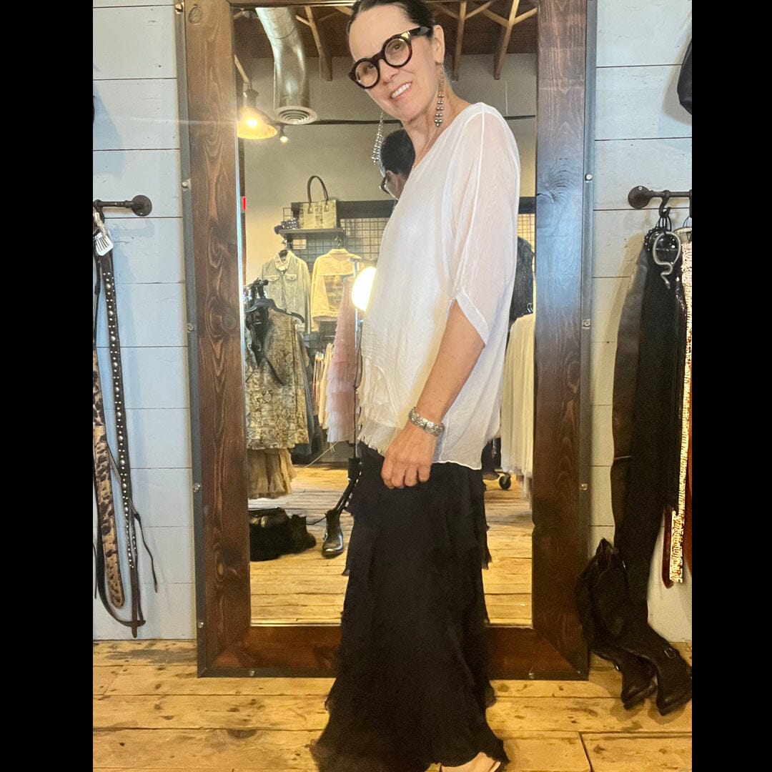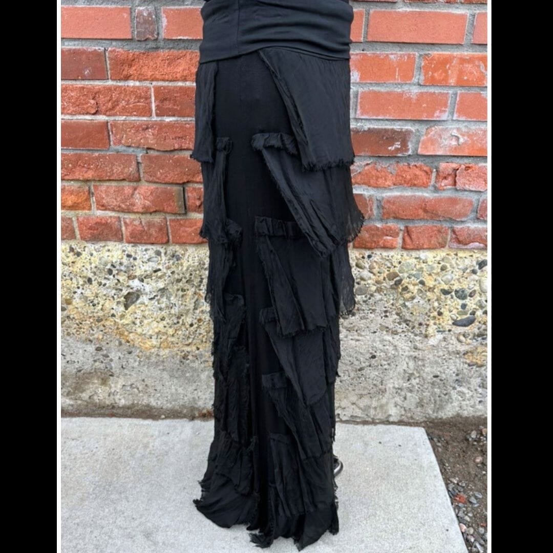 Black Tiered Silk Skirt - KGG1-BK