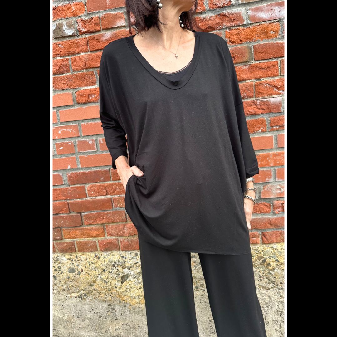 V-Neck Top - Henriette Steffensen - Black - 96078B