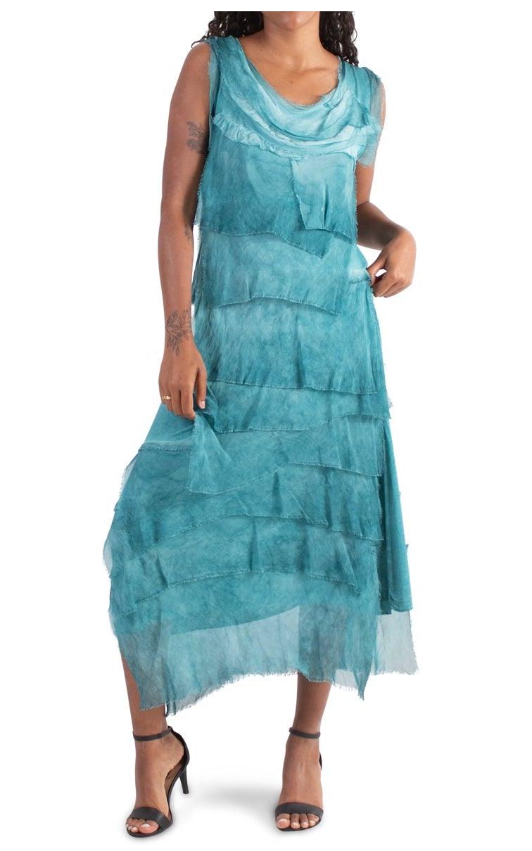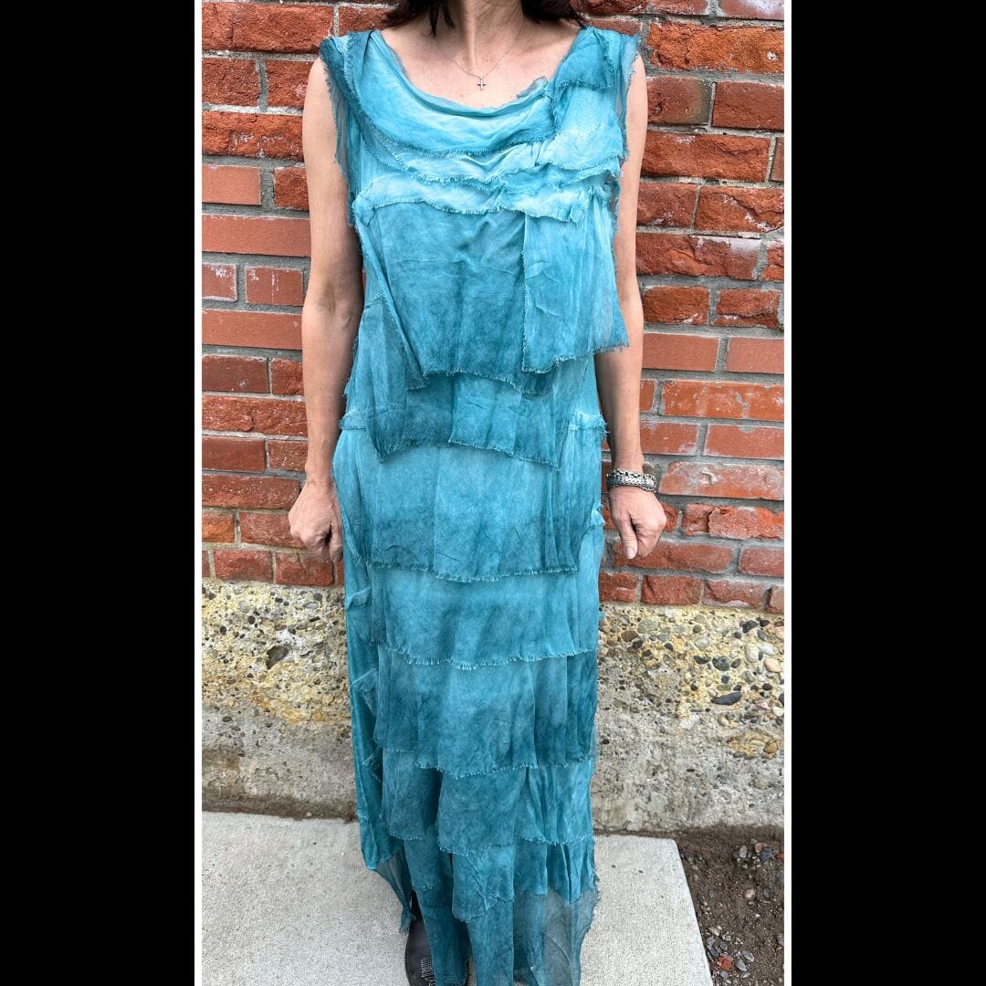 Washed Teal Silk Tiered Maxi Dress - DGG2-WTL