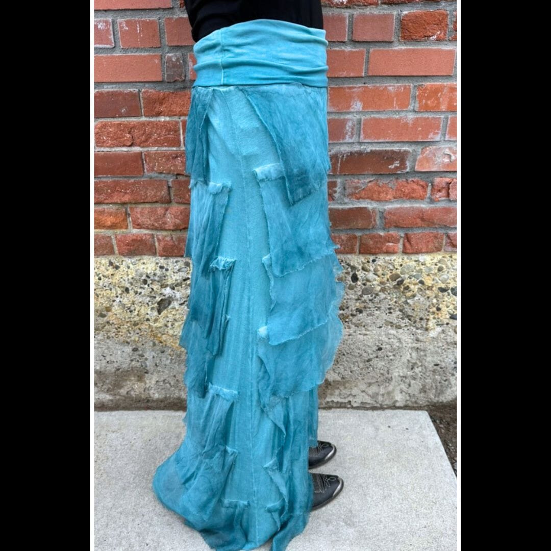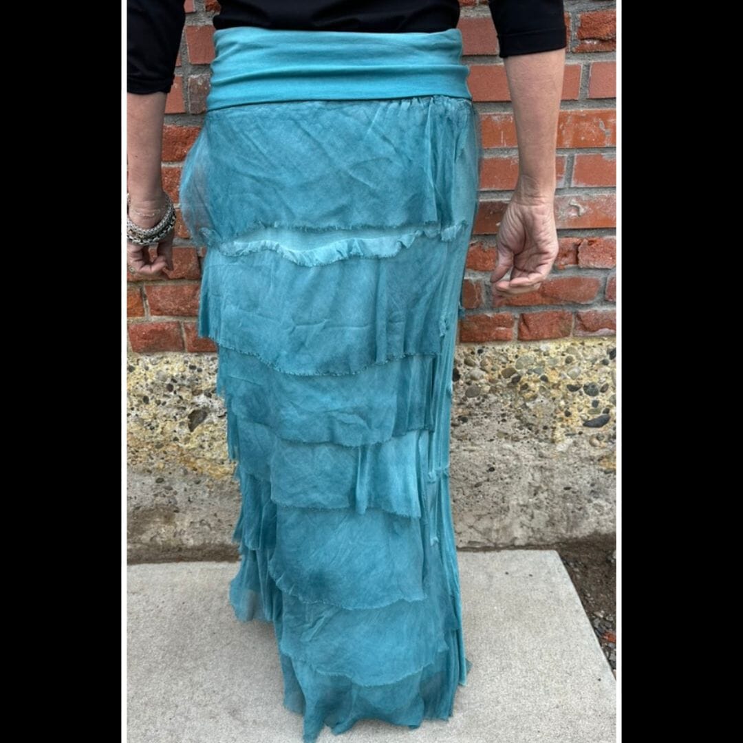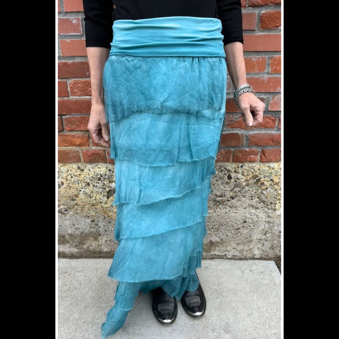 Washed Teal Silk Tiered Skirt - KGG1-WT