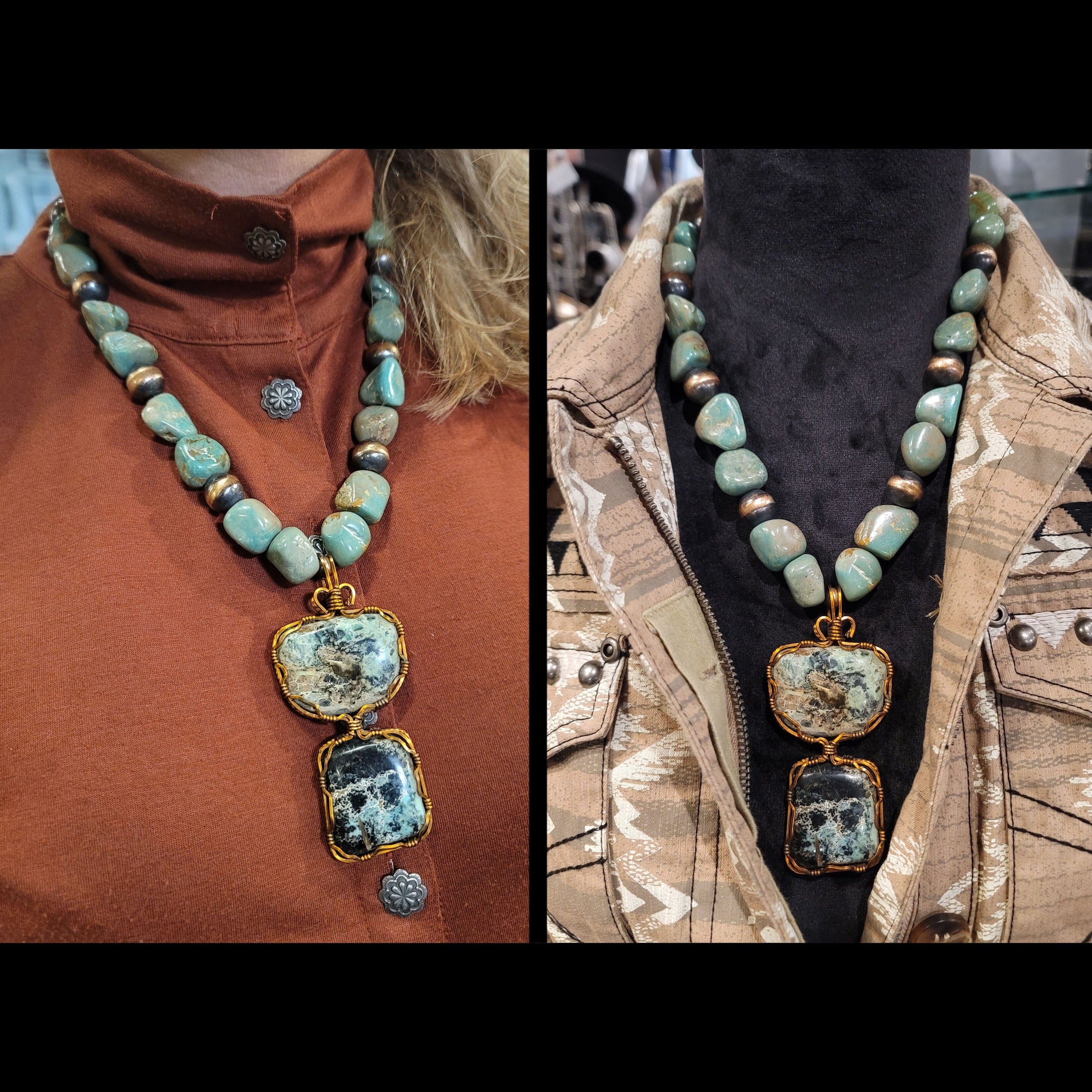 Wired “Apache Turquoise” and Copper Pearl Necklace - NSZ48
