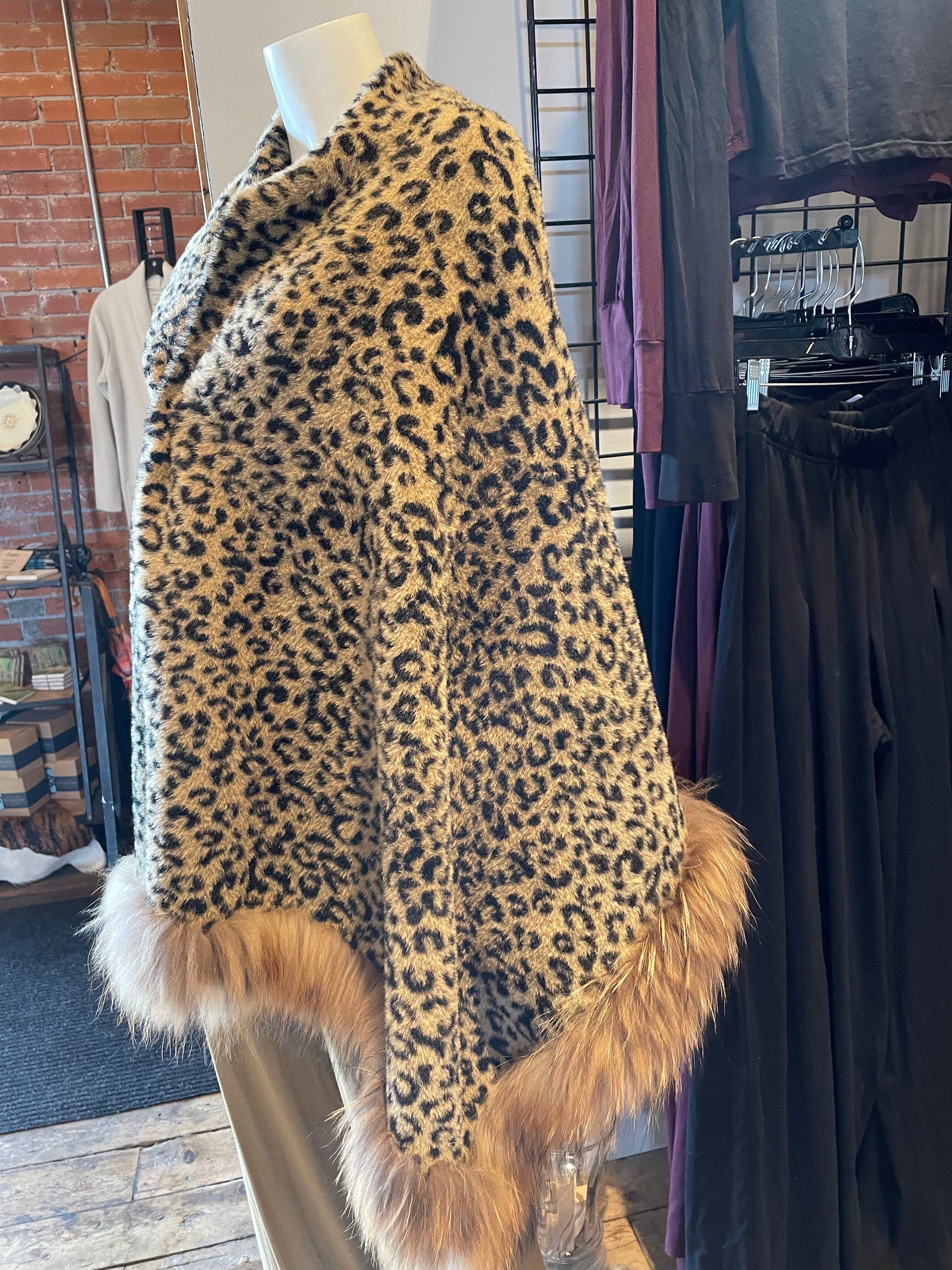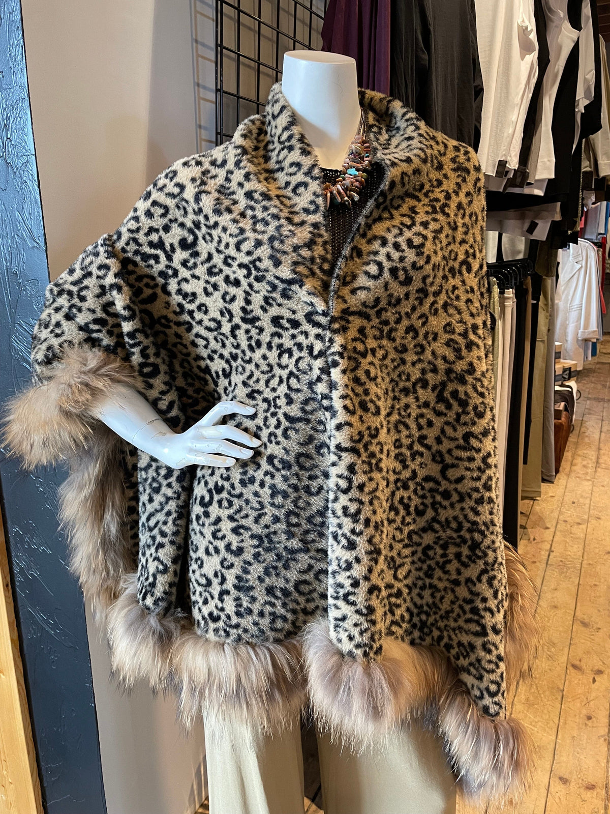 Wool Blend/Raccoon Trim Leopard Print Cape - CPMK-LP